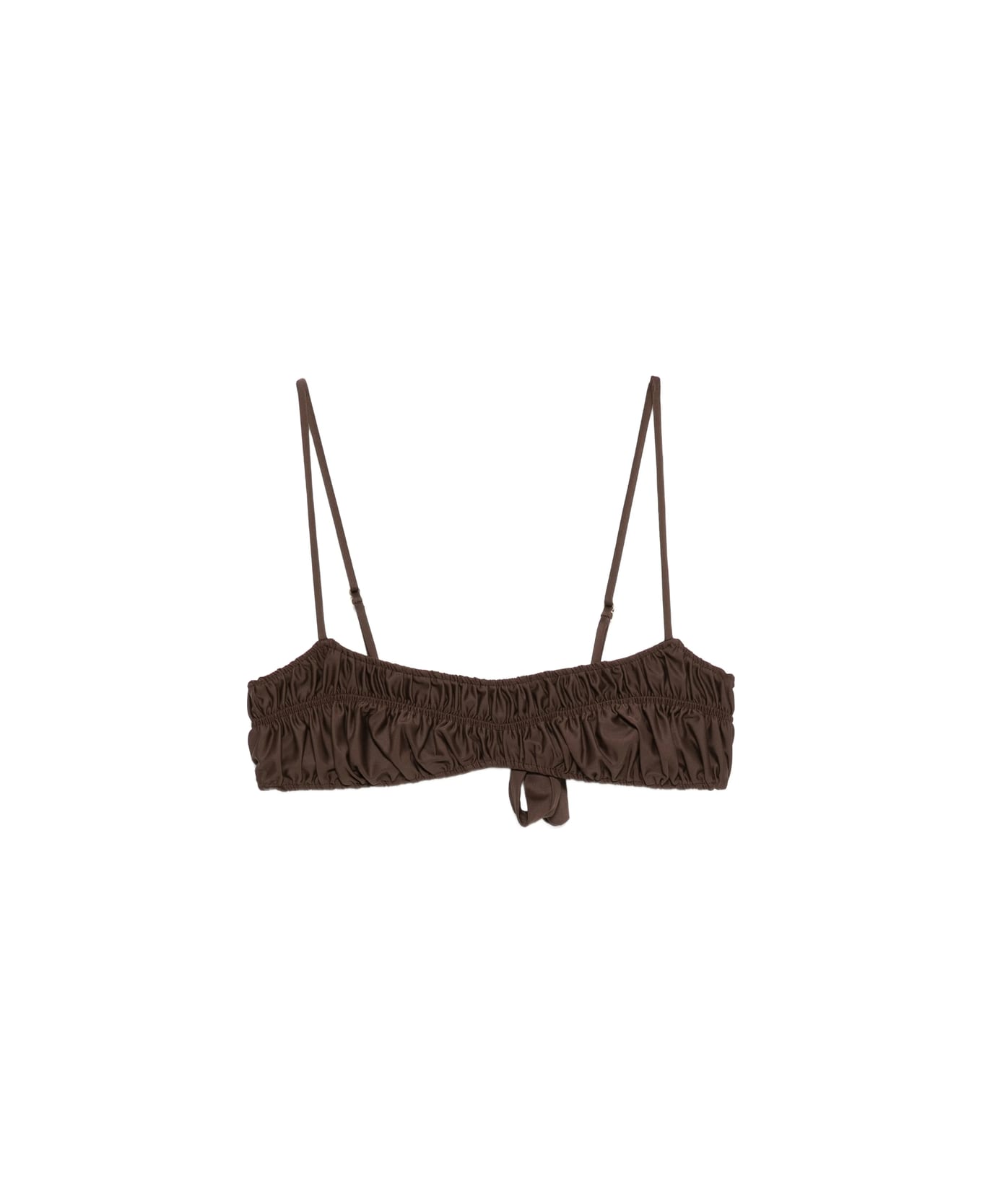 hazelnut brown ruched detail tie detail adjustable straps gold-tone hardware Be mindful to try on swimwear over your own garments.