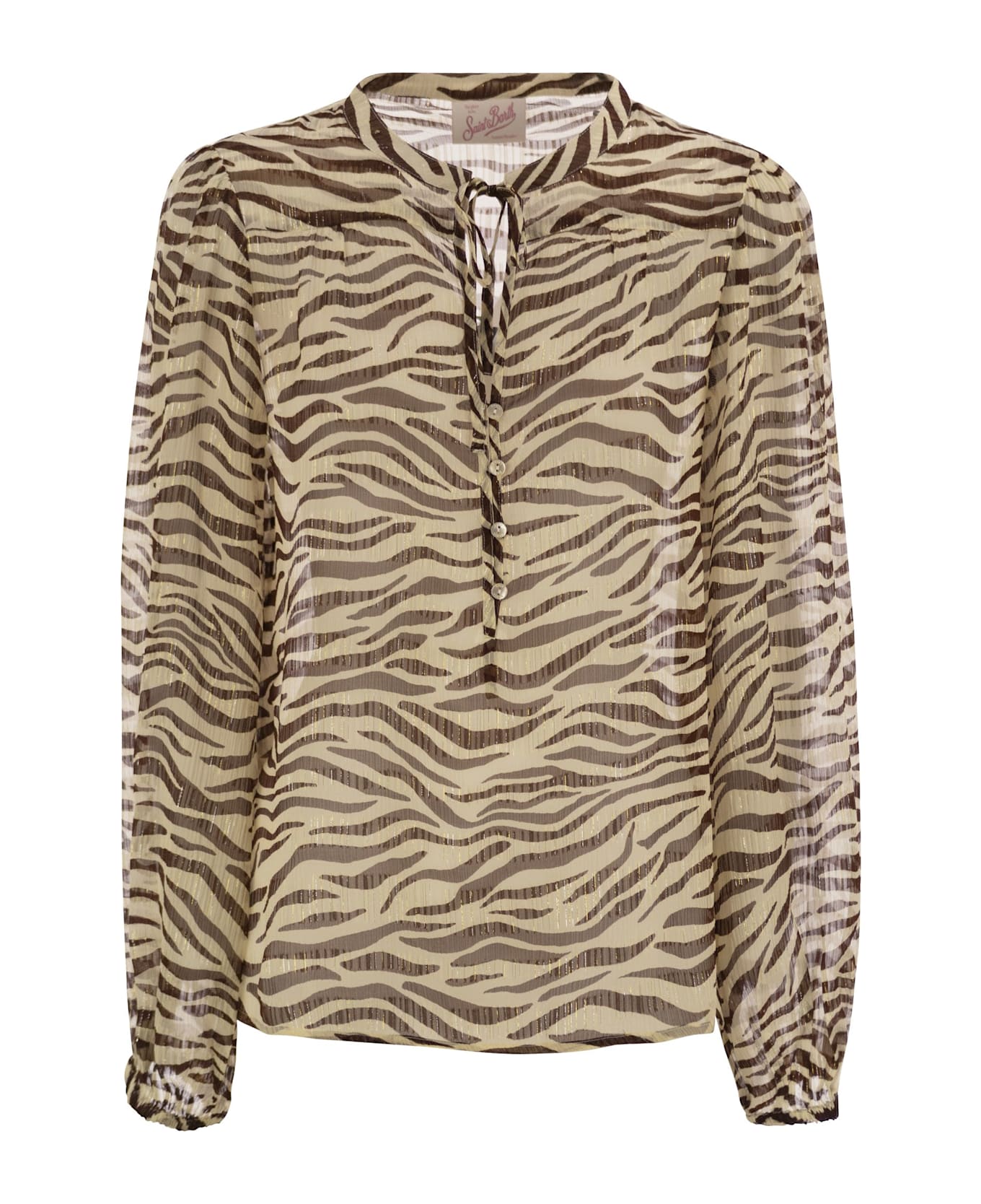The Harper blouse with its oversized cut offers more space around the chest and waist. Its length falls above the hips, ideal for summer wear. This product, along with many other MC2 Saint Barth garments, is made with an all-over print that falls differently on each garment. - Mandarin collar with lace fastening - Button fastening - Long sleeves with elasticated cuffs - Exclusive Saint Barth embroidery on sleeve - Animalier fantasy DESIGNER ID: HRP001 06162H