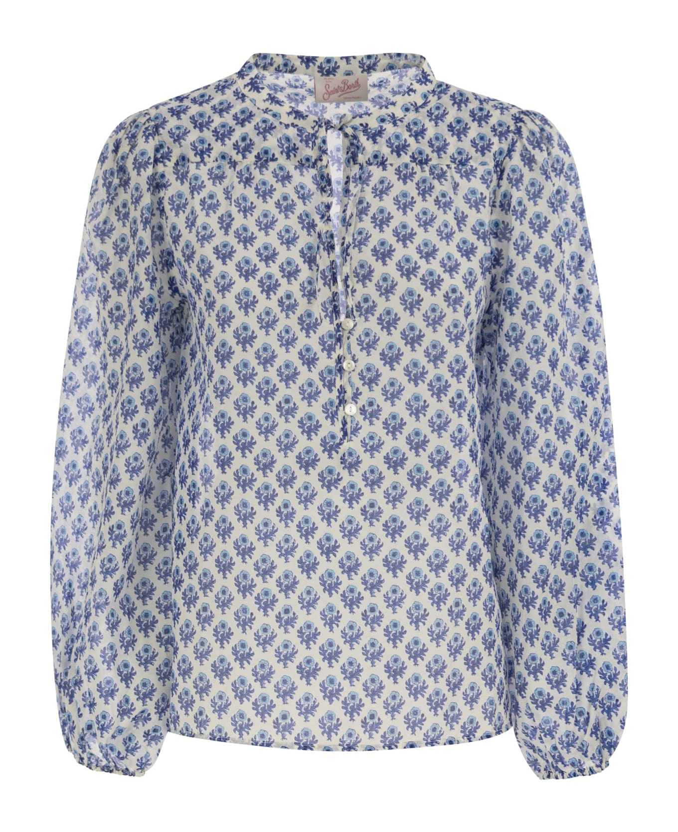 The Harper blouse with its oversized cut offers more space around the chest and waist. Its length falls above the hips, ideal for summer wear. This product, along with many other MC2 Saint Barth garments, is made with an all-over print that falls differently on each garment. - Mandarin collar with lace fastening - Button fastening - Long sleeves with elasticated cuffs - Exclusive Saint Barth embroidery on sleeve - Floral pattern DESIGNER ID: HRP001 01318H