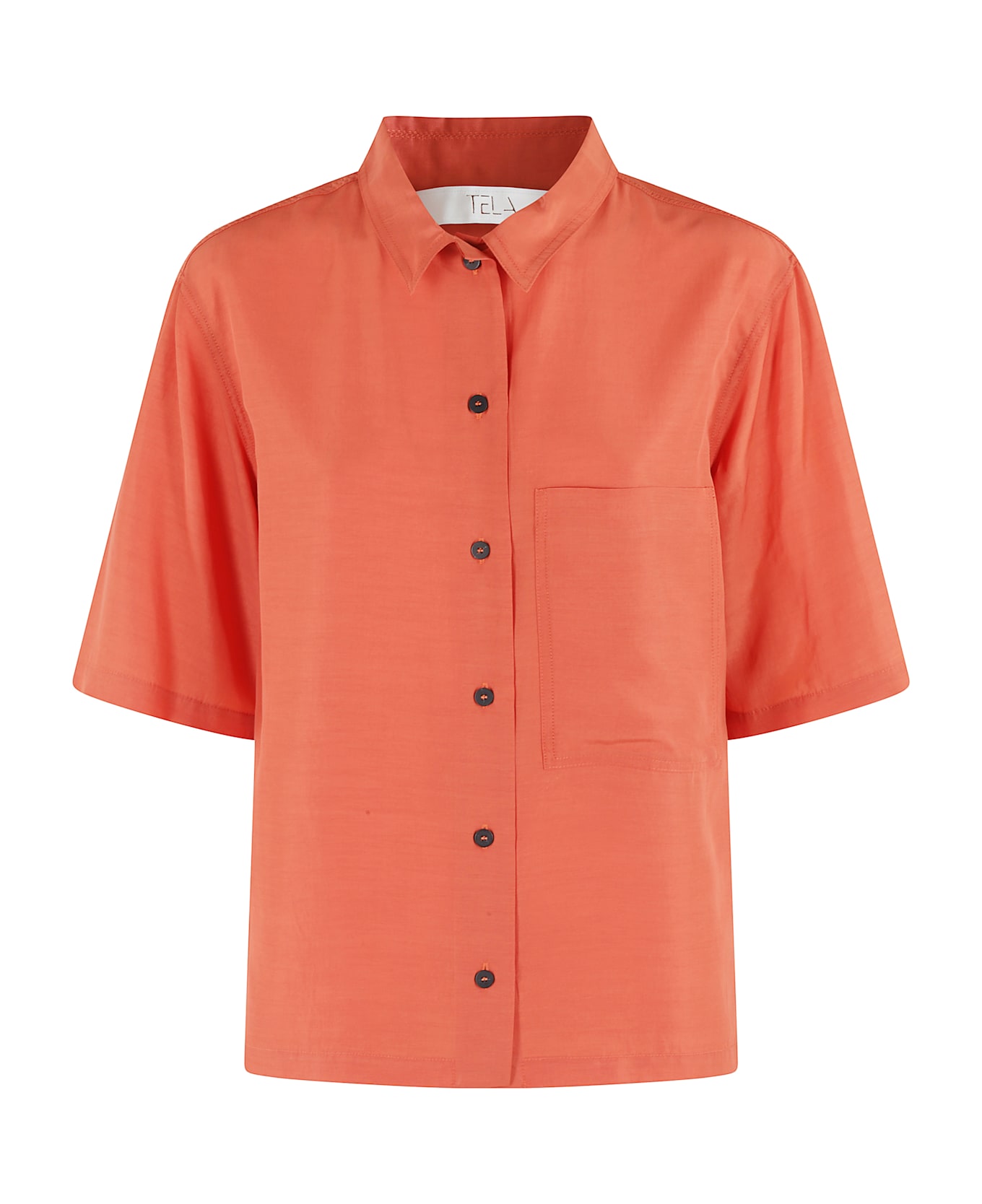 Pliny shirt - Canvas - Orange color - Flowing fabric - Pointed collar - Short sleeve - Patch pocket on chest - Front button closure - Boxy fit