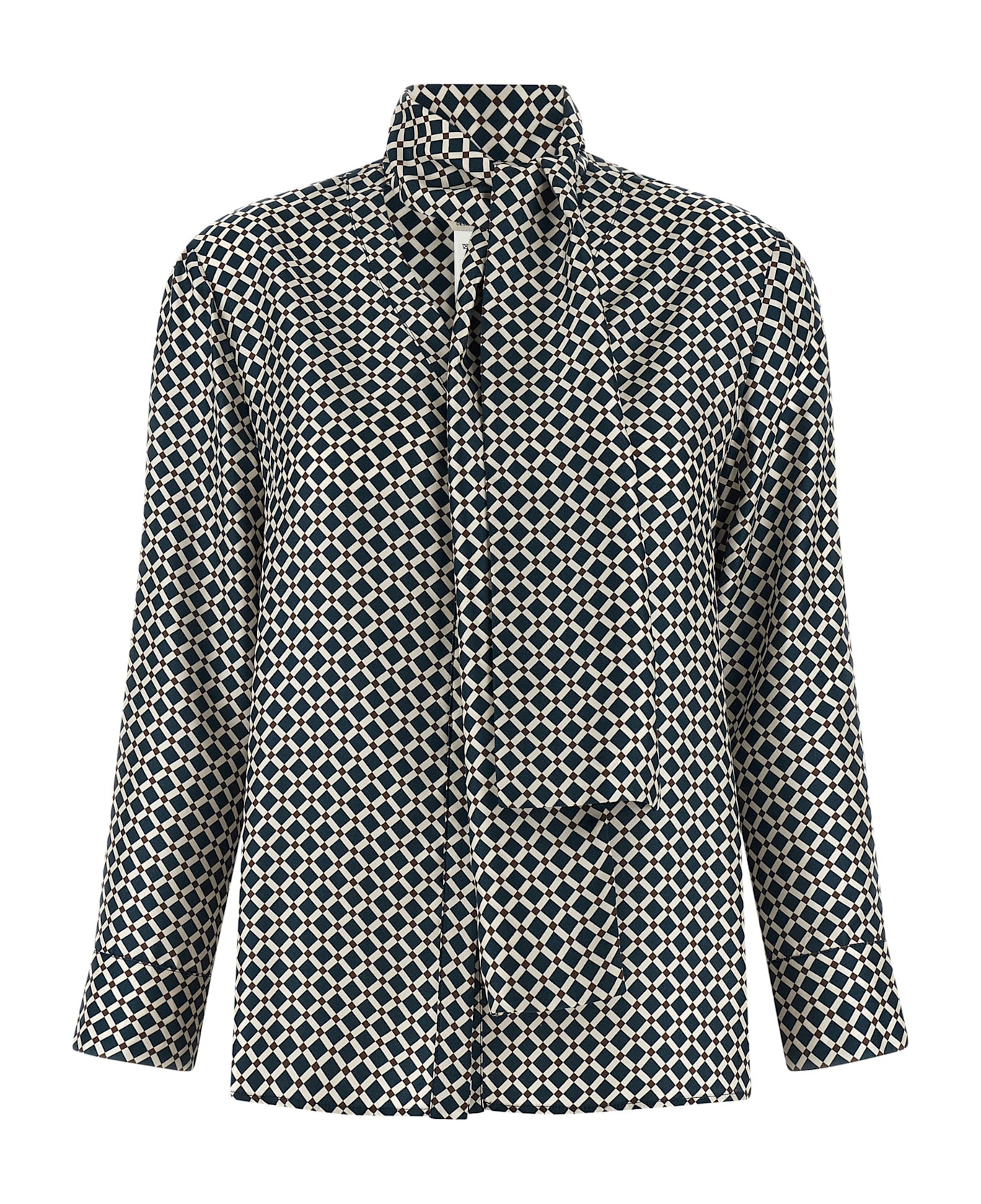 SmmVittoria shirt in pure patterned silk twill, V-neck, matching sash with removable scarf effect, concealed front button closure, long cuffed sleeves. Composition: 100% silk