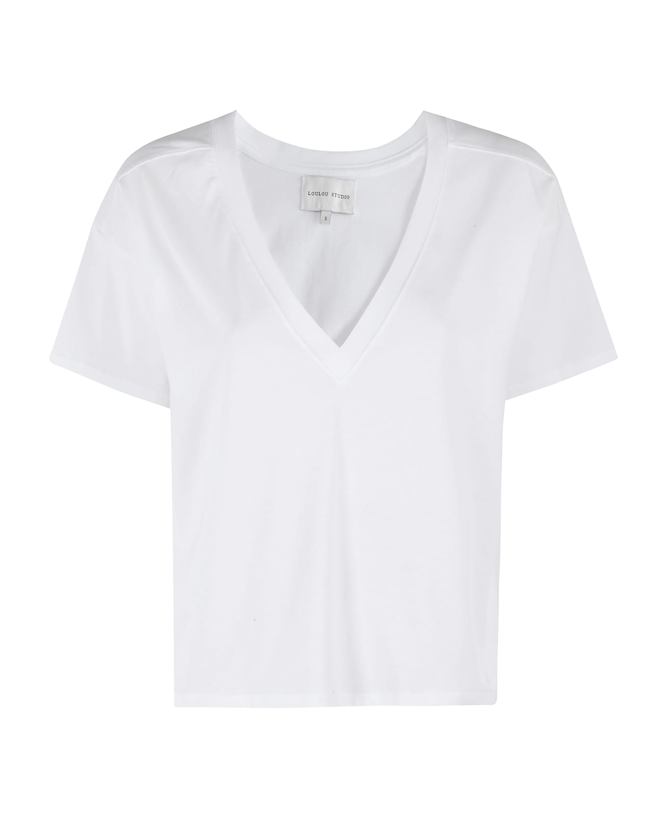 FAAA T-shirt - Loulou Studio - White color - Supima cotton fabric - V-neck - Short sleeve - Boxy fit