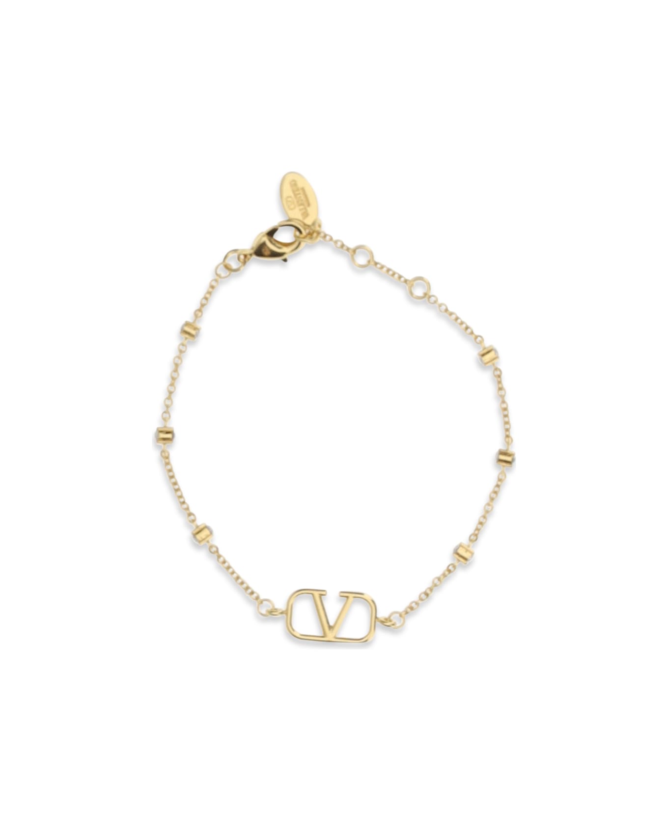 The vlogo signature bracelet with swarovski® crystals by valentino garavani is an elegant and luminous accessory, crafted in metal with an 18-karat gold finish. the swarovski® crystals add sparkle and sophistication, making the bracelet perfect for completing sophisticated looks with a distinctive touch of luxury. Composition: 100% % Metal Metallic Metallised