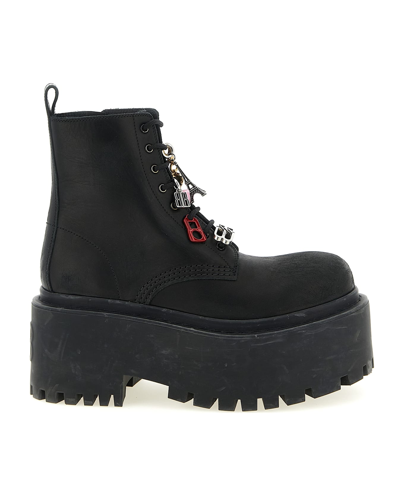'Strike' ankle boots in soft used-effect bull leather, amphibious model, rounded toe, laces closure with multicolor and multimaterial removable charms, side zip, serrated rubber platform sole. Composition: 100% bull leather (Bos Taurus)