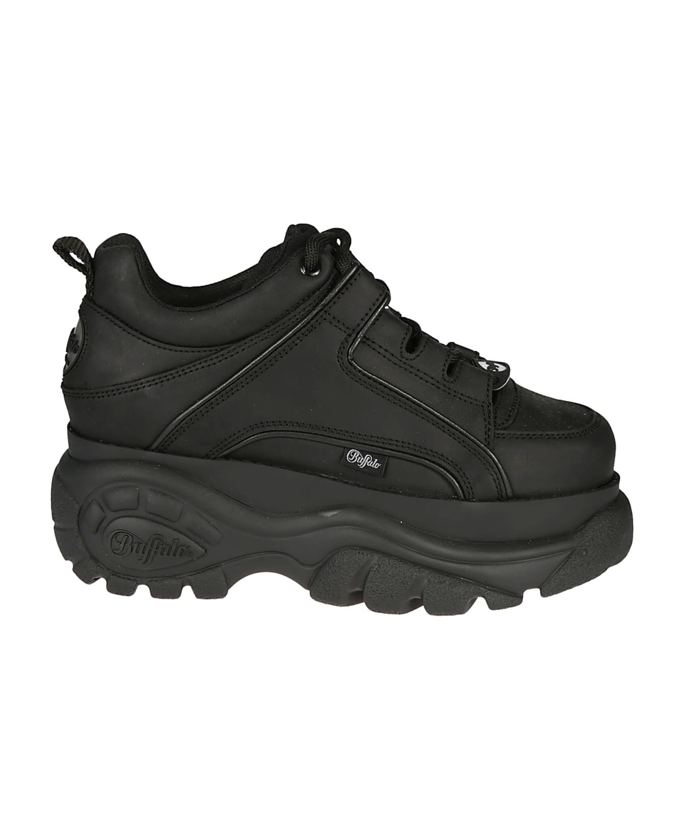 1339 Classic Platform Sneakers from Buffalo: Black 1339 Classic Platform Sneakers with round toe, front lace-up fastening, pull-tab on rear, branded logo on tongue and ridged rubber sole. Composition: 100% Leather
