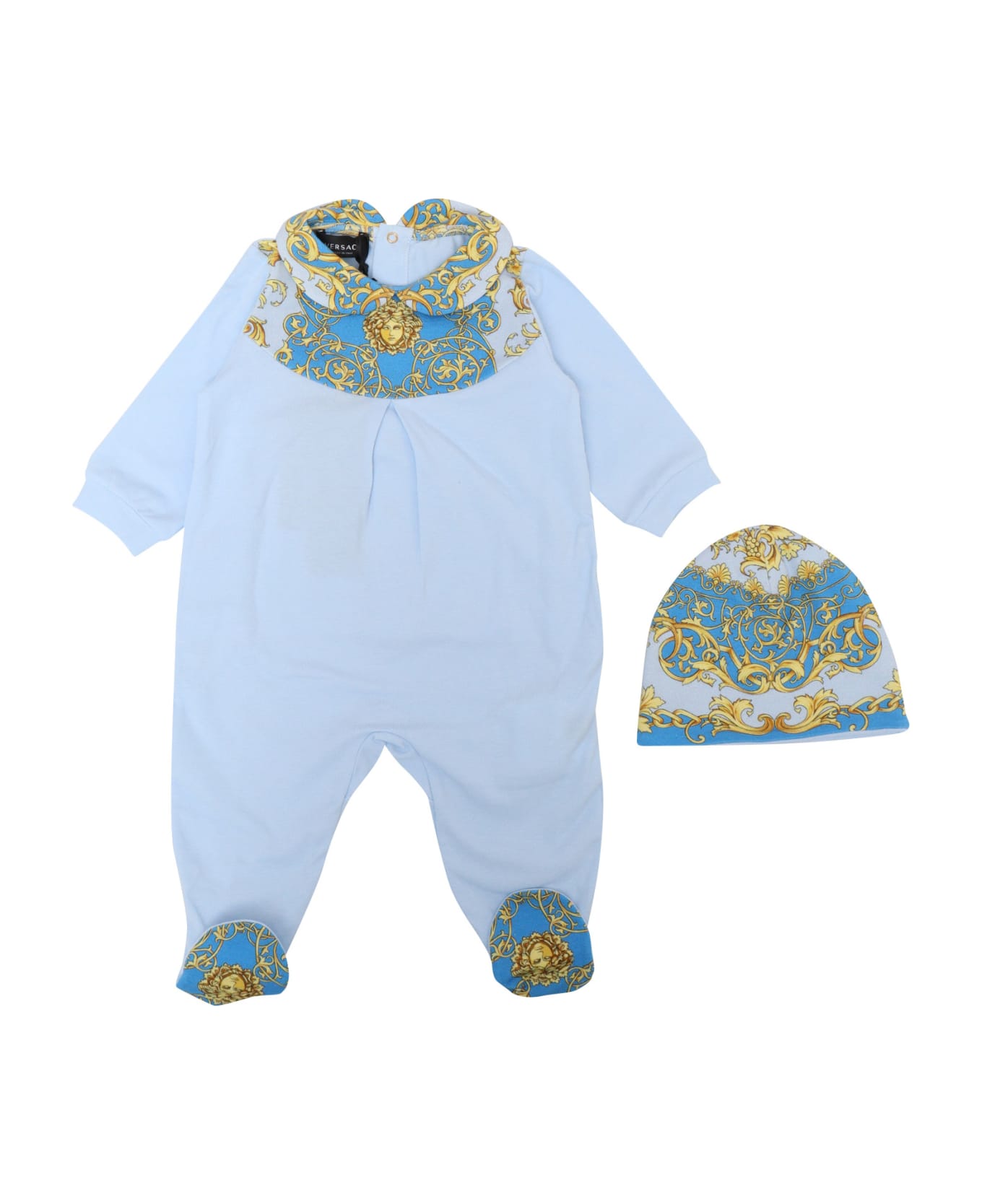 Stretch cotton set, onesie with peter pan collar and feet, Baroque print beanie Composition: 6% ELASTANE 94% COTTON FABRIC 2 6% ELASTANE 94% COTTON