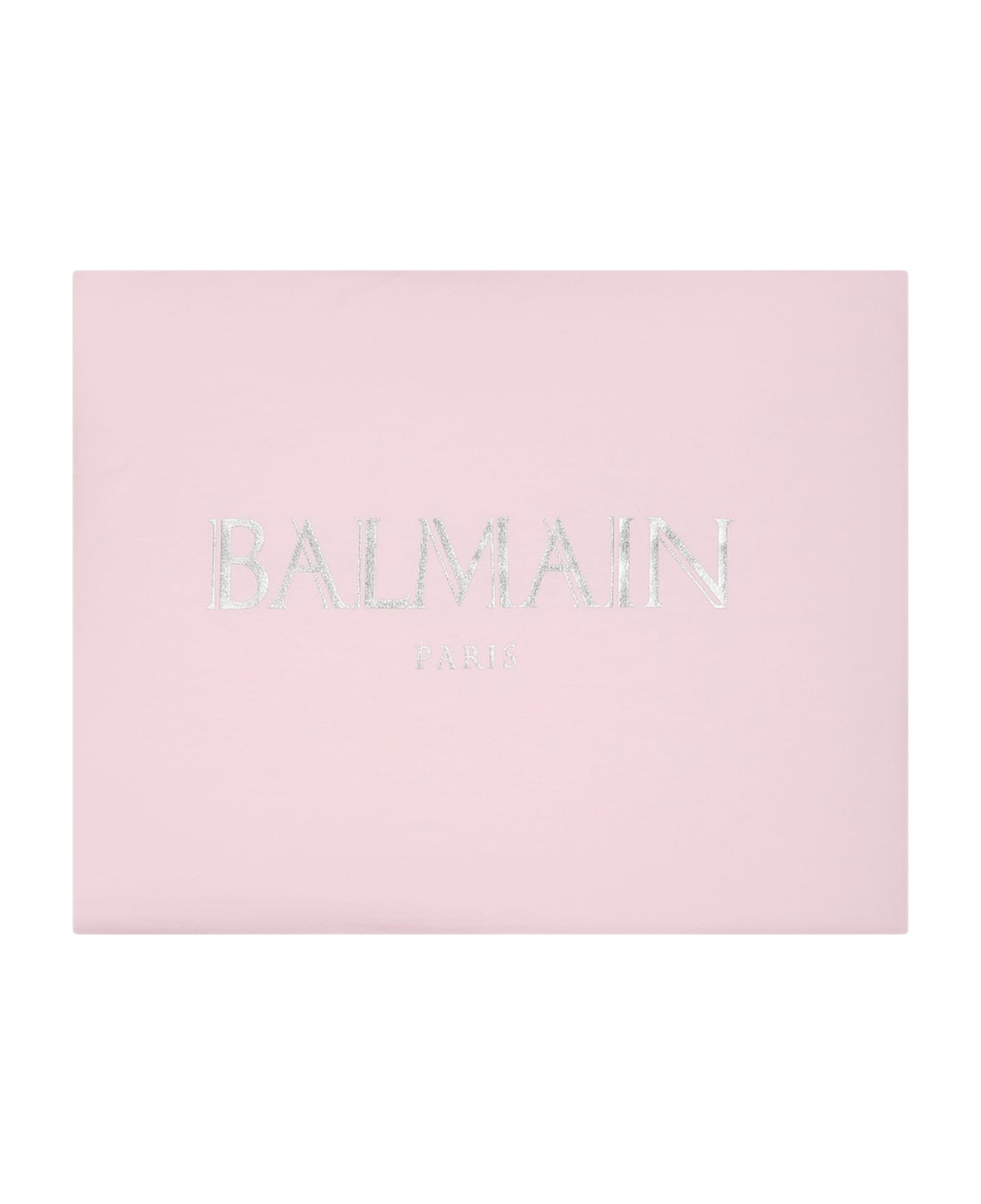 Padded pink blanket, in organic cotton, with white profiles. It is embellished with silver logo on the front. 84 x 82 cm.