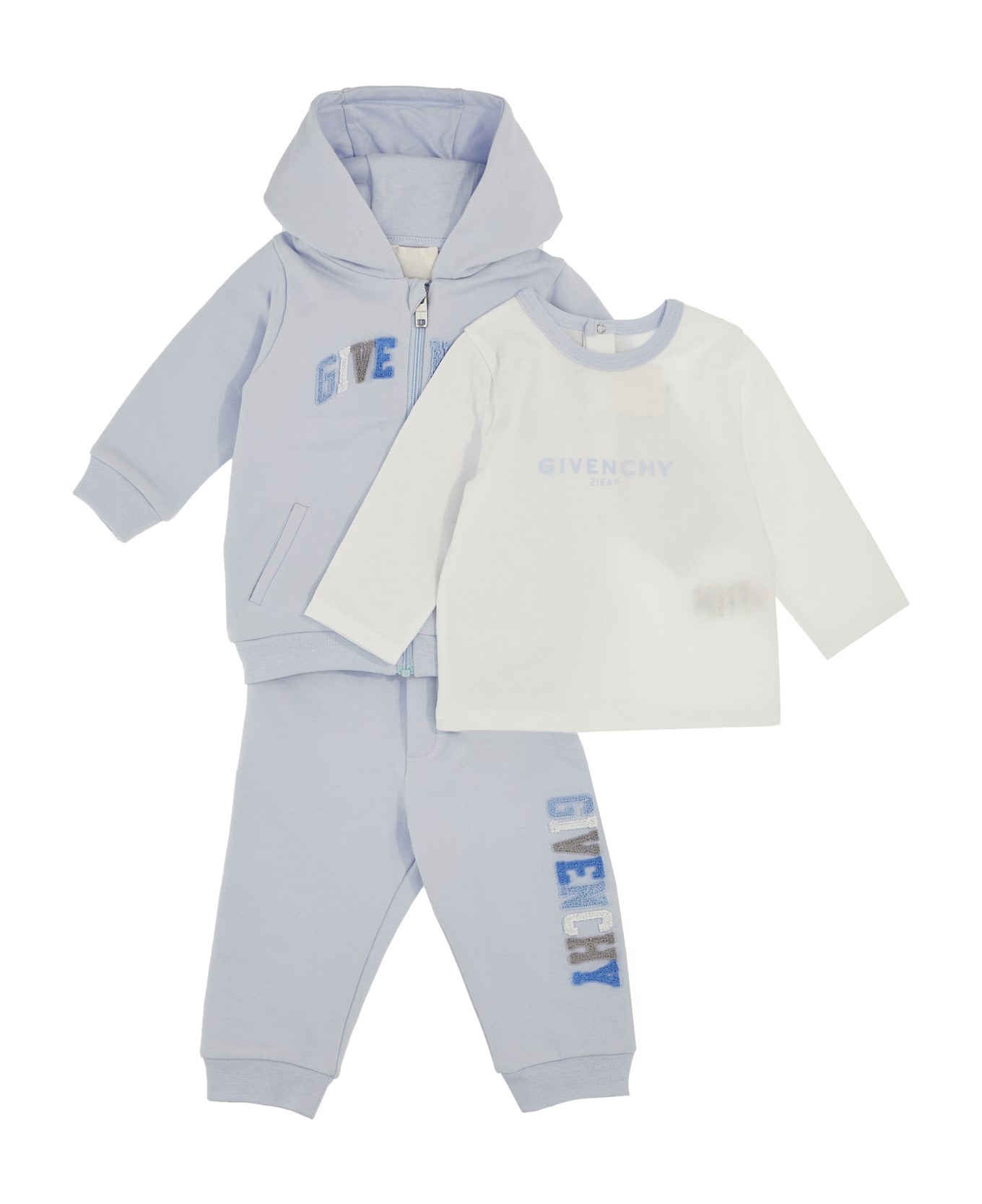 Cotton suit consisting of t-shirt, hoodie with zip closure, joggers with elastic waistband, flocked logo. Composition: 95% cotton 3% elastane