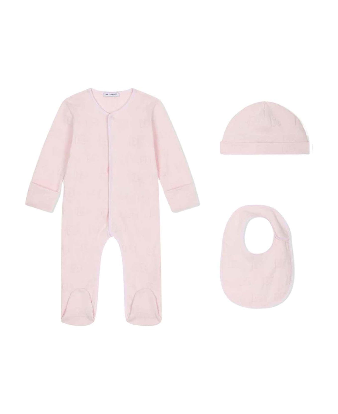 Pink set baby girl. Knitted design, logo jacquard pattern, round neckline, snap button closure, long sleeves and matching cover up. 100% Cotton