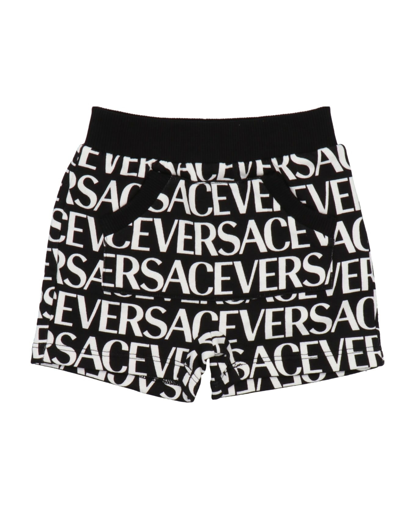 Cotton shorts with all-over logo print and elastic waistband Composition: