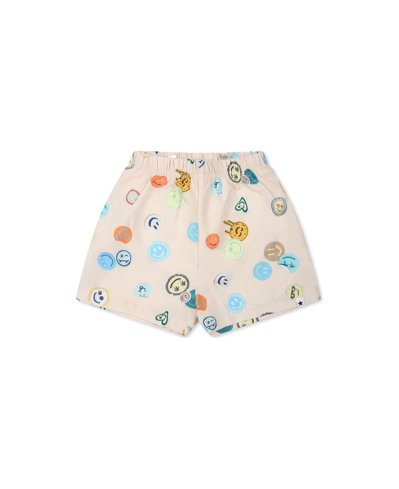Ivory swim shorts in recycled polyester blend, with elasticated waist. They are embellished with all-over smiles