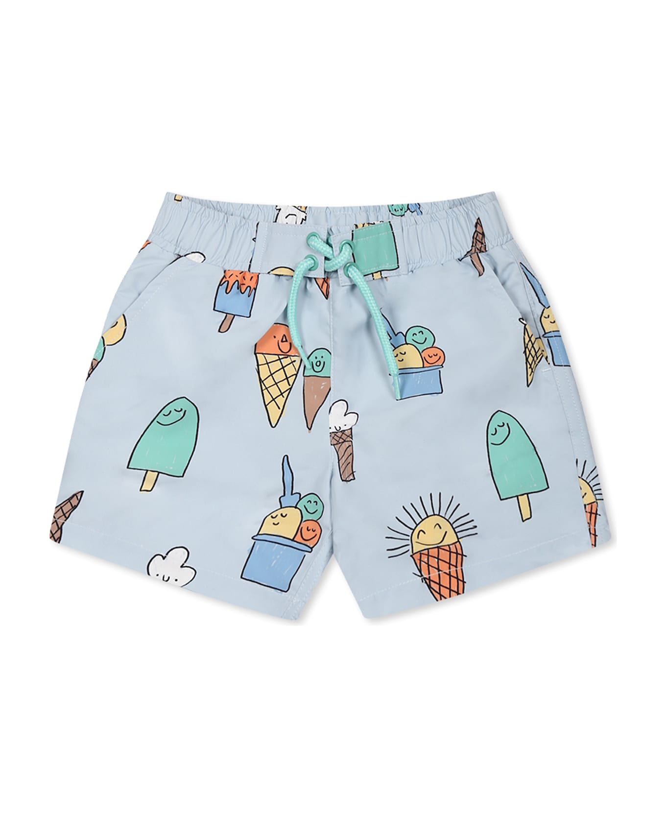 Light Blue Swim Shorts For Baby Boy With Ice Cream