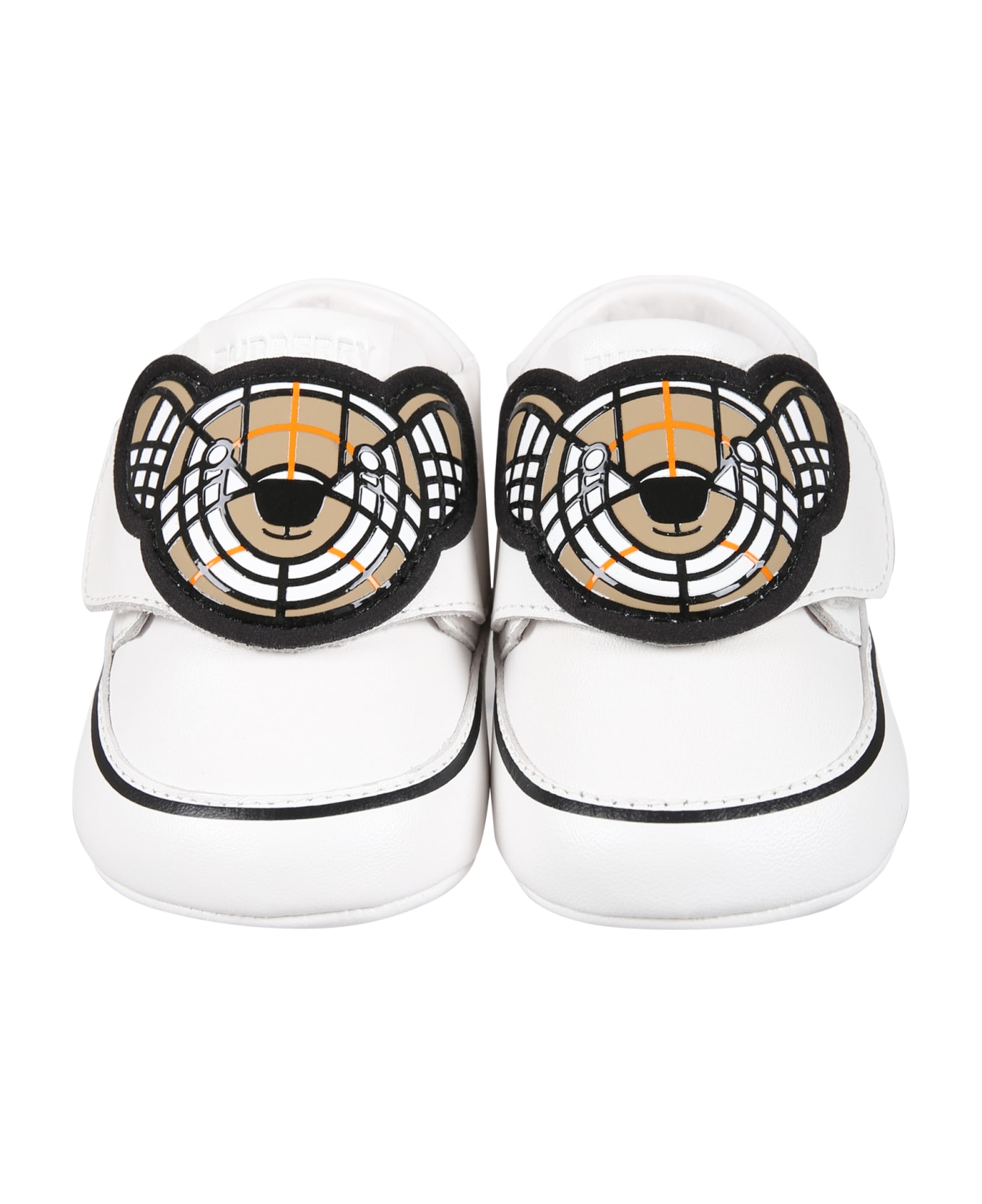 White cradle sneakers, side velcro closure. They are embellished with Thomas Bear patch on the front and logo, on the back.