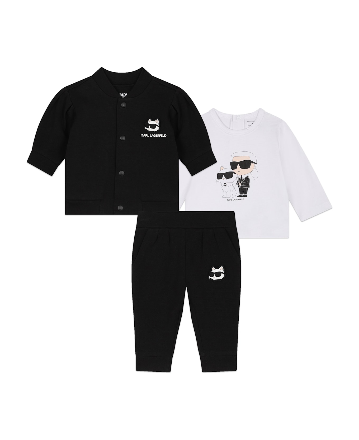 bianco/nero misto cotone T-shirt maniche lunghe girocollo chiusura posteriore con bottone stampa con logo sul petto Giacca chiusura frontale con abbottonatura maniche lunghe orli a coste stampa con logo sul petto. stampa con logo sulla gamba vita elasticizzata puro cotone 80%, poliestere 20%