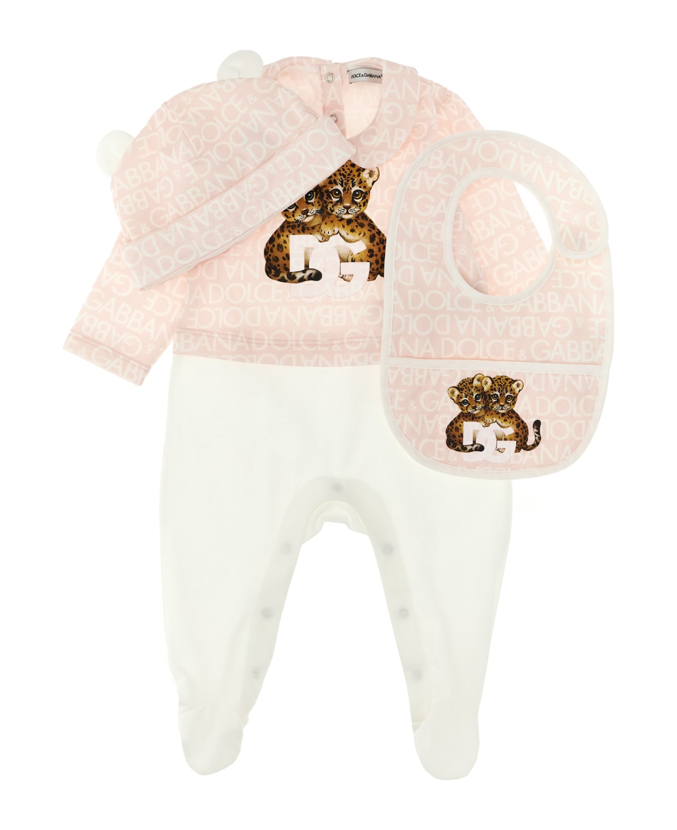 'Logomania' cotton baby set with logo print consisting of a jumpsuit, bib and cap. Composition: 100% cotton