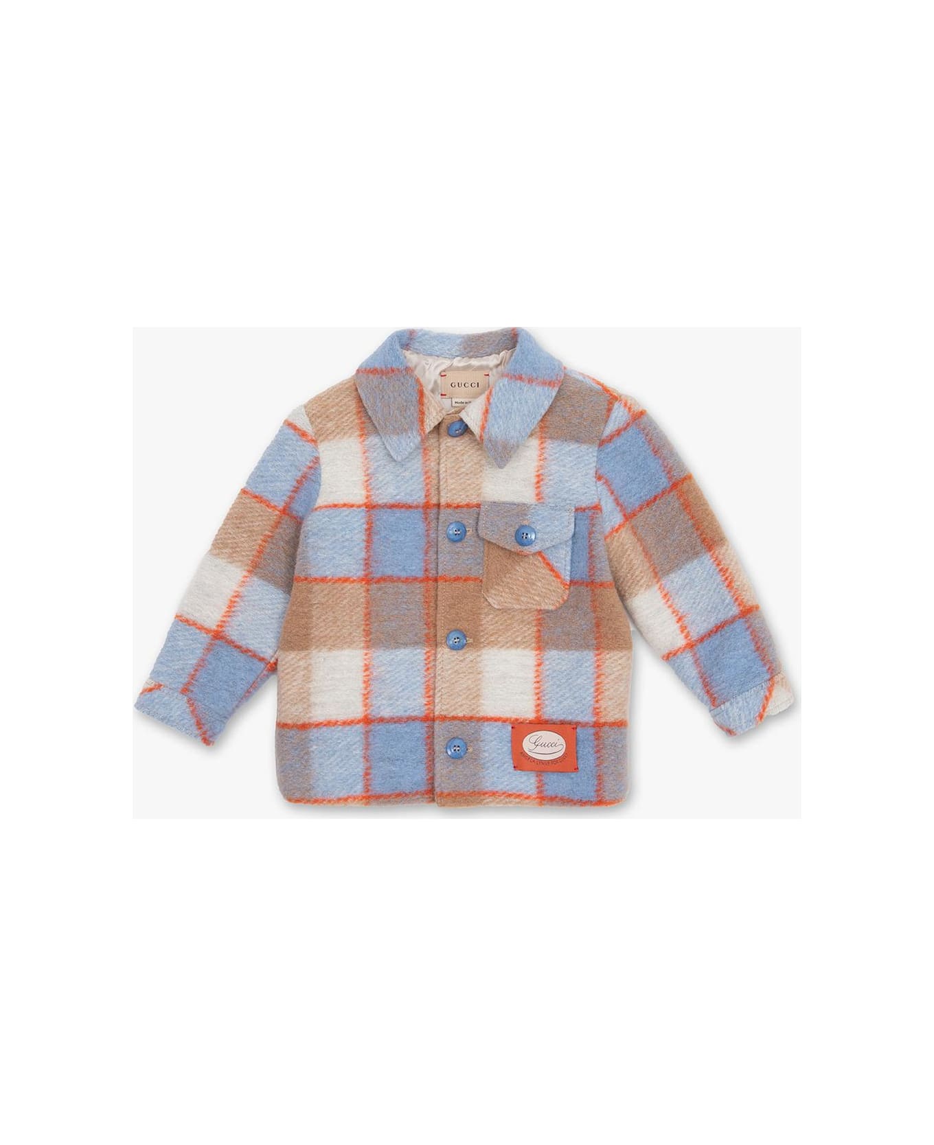 Multicoloured jacket from Gucci Kids. Made of checked wool, this style fastens with buttons and showcases a logo patch, two flapped pockets with snaps and long sleeves with button cuffs. Composition: Outer Layer: 70% Wool 30% Polyester