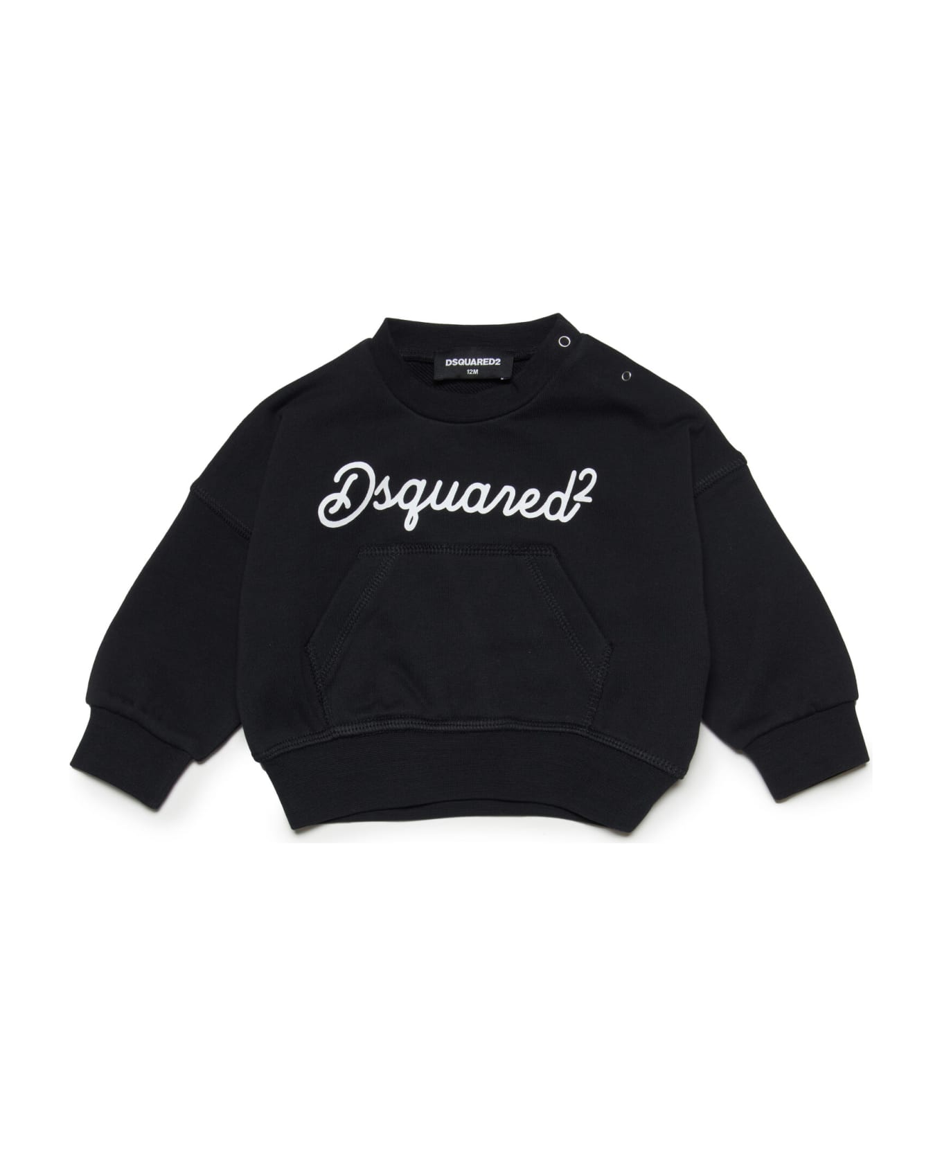 Crew-neck, long-sleeved, cotton sweatshirt. It features a pouch pocket on the front, elastic hem and cuffs. It features a Dsquared2 Cursive logo print on the front. A versatile garment suitable for different occasions of use.