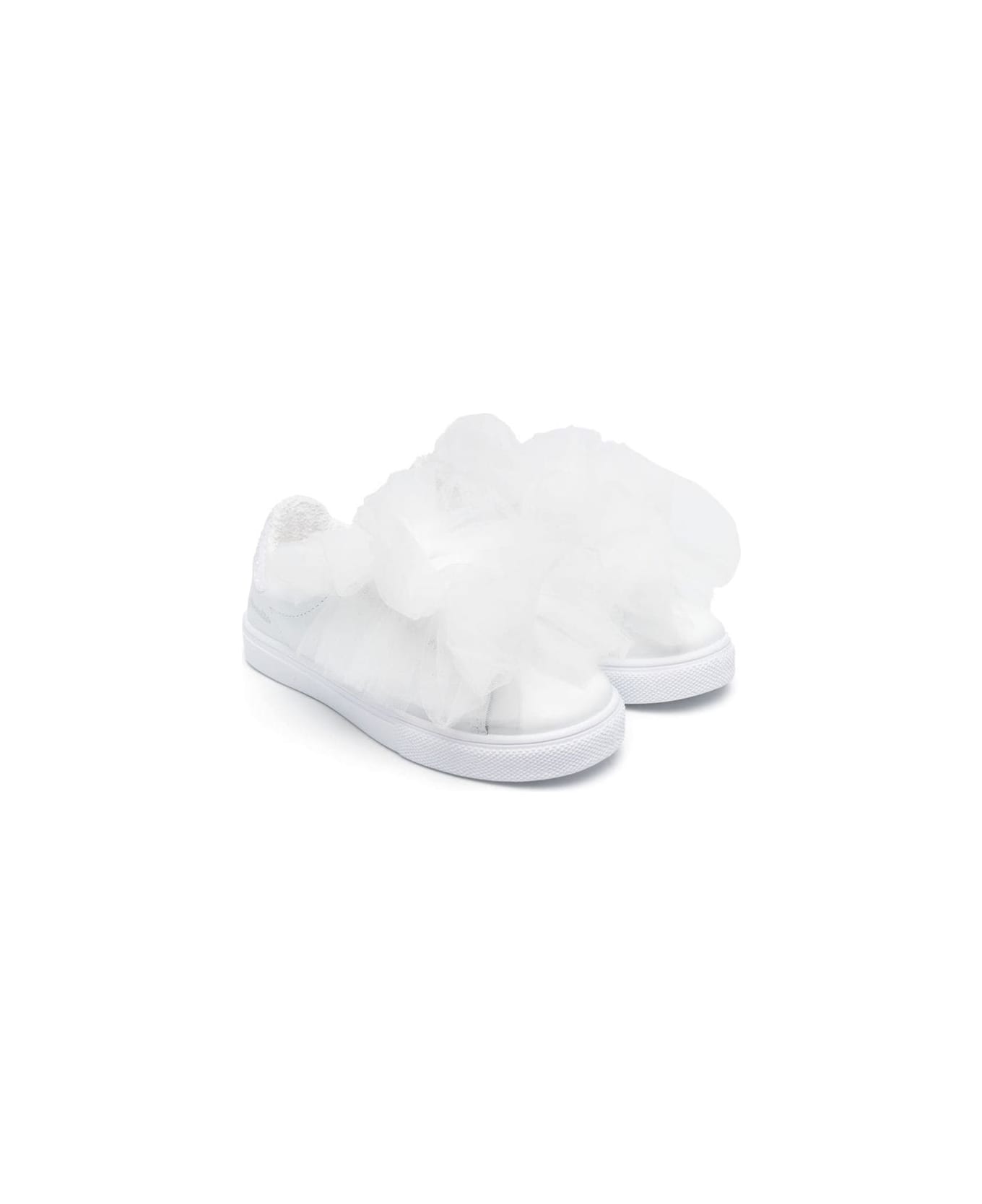 White Low Top Sneakers With Tulle Detail In Smooth Leather Girl
