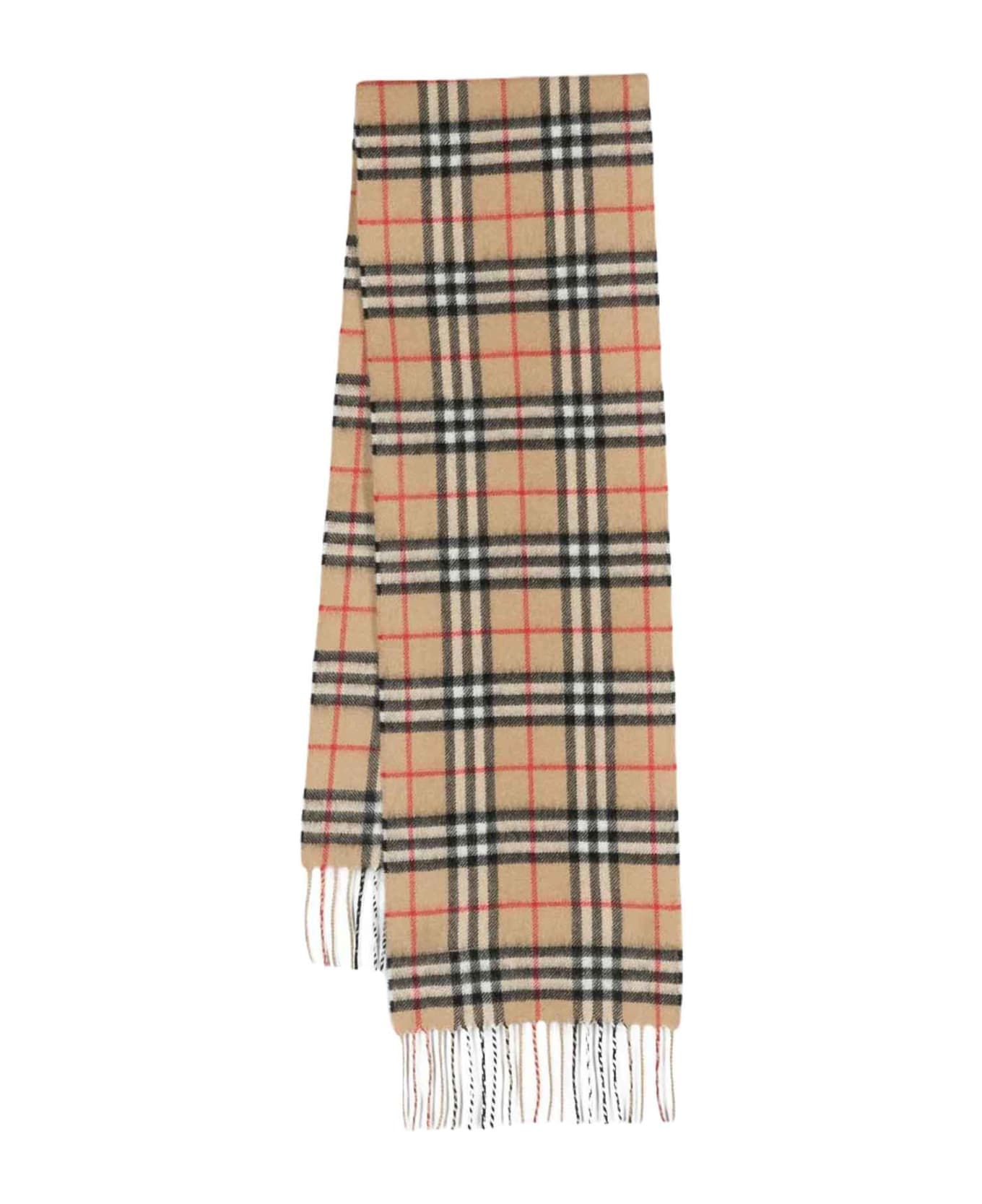 Brown scarf unisex. Check print, rectangular design and fringed edge. Cashmere 100%