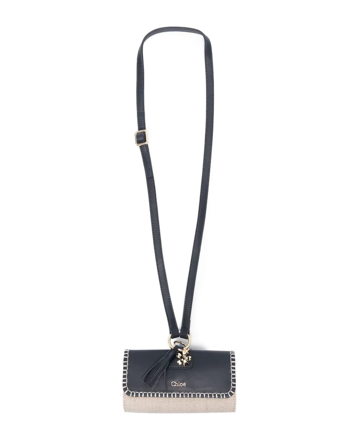 Bum shoulder bag, black and light beige, cotton, jute, gold-tone logo plaque, foldover top with press-stud fastening, internal logo patch, single shoulder strap, main compartment, depth 3 cm, height 8 cm, strap 52 cm, width 15 cm