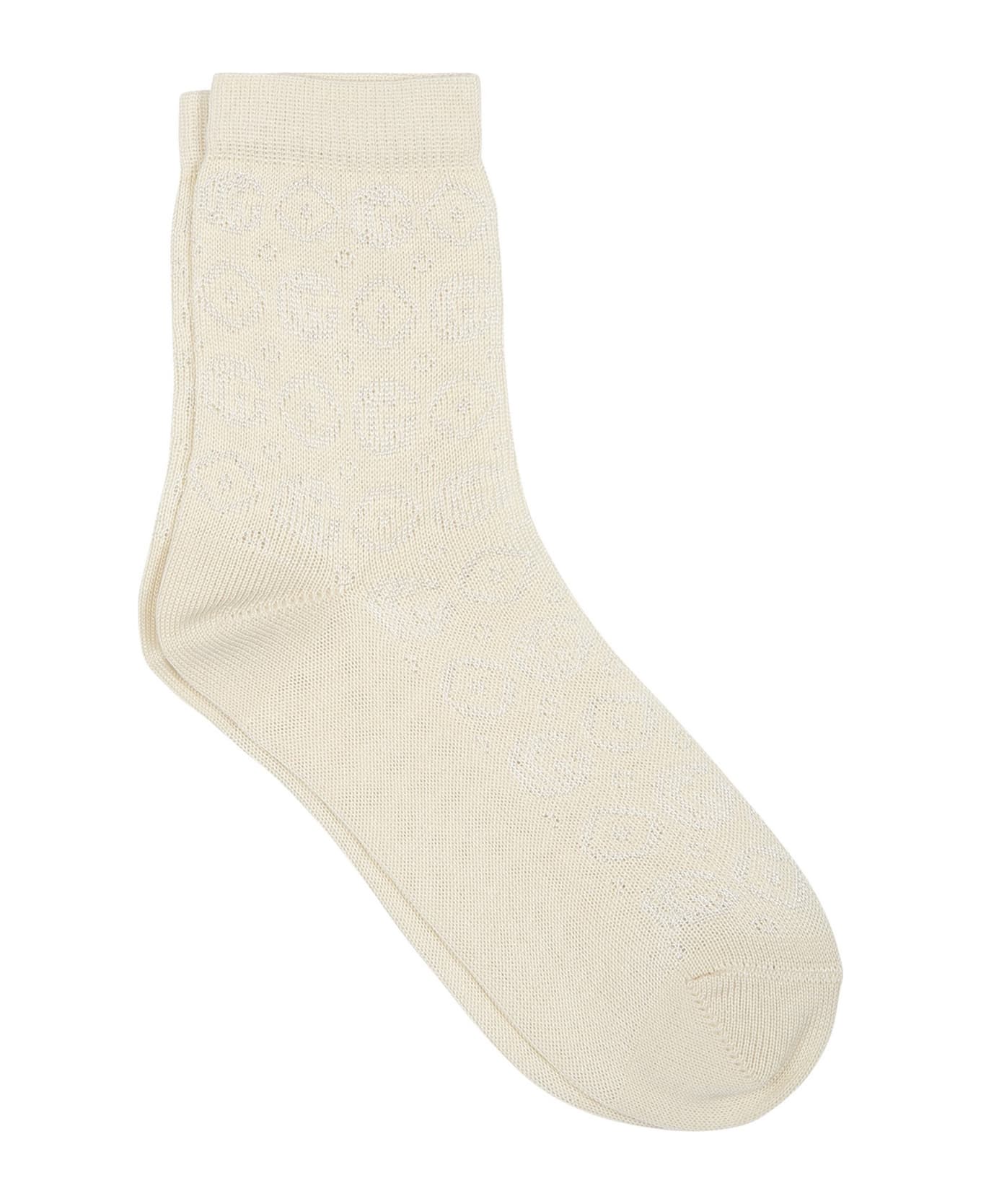 Color: Ivory Ivory socks in cotton and silk, with ribbed hem, embellished with double G embroidered all-over. 67% Cotton, 33% Silk. Machine wash at 30C.