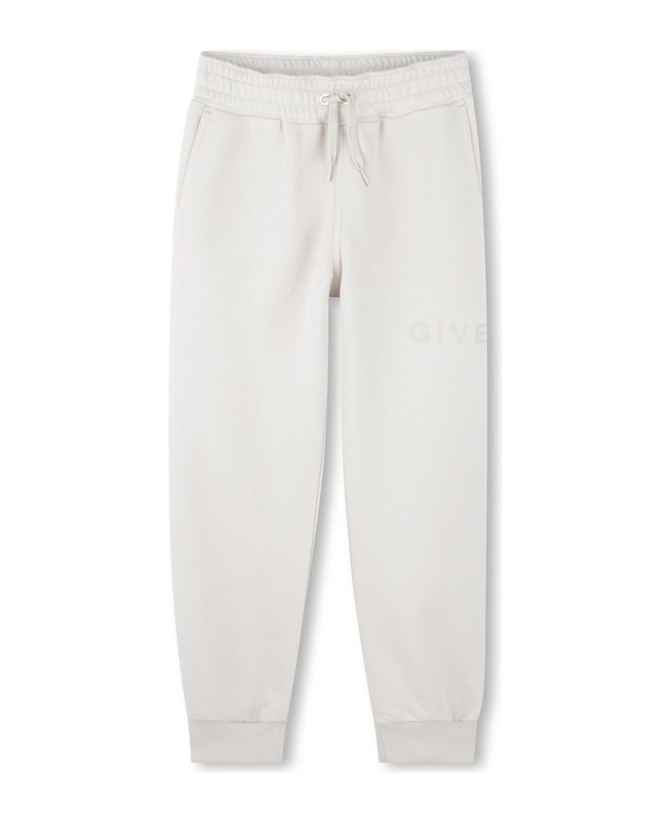 White organic cotton blend track pants, logo print at the leg, elasticated drawstring waistband, two side inset pockets, rear welt pocket, ribbed ankles Composition: Organic Cotton, 85% , Polyester, 15%