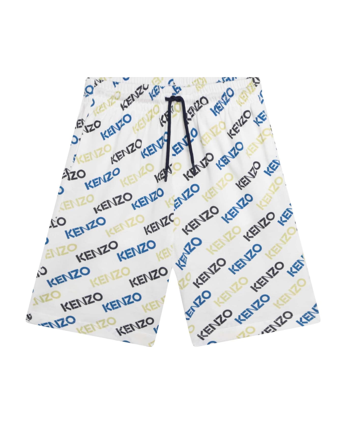 White/multicolor, cotton, all-over logo print, elasticated drawstring waist, back welt pocket and straight fit. Composition