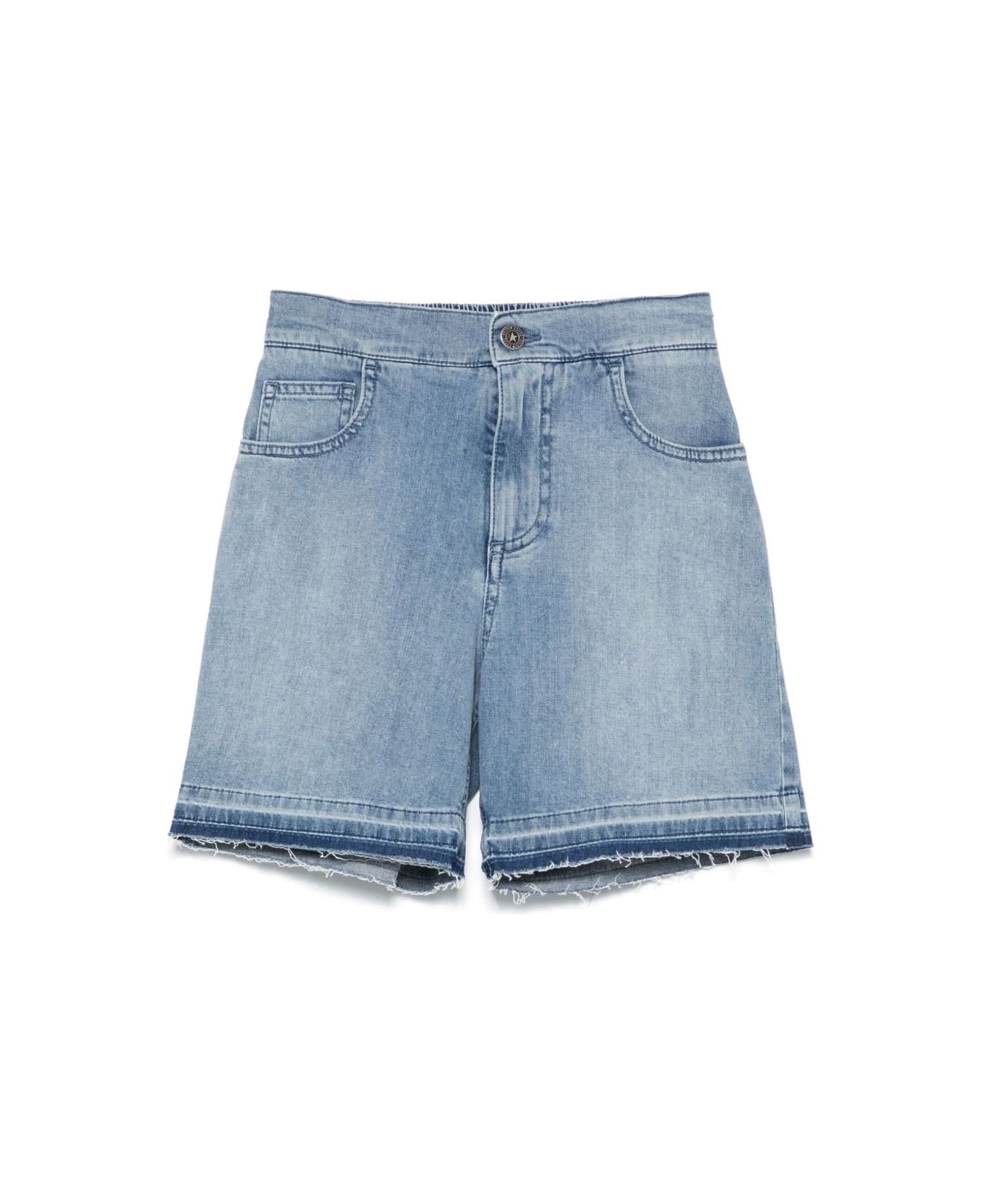 Shorts denim con ricamo azzurro chiusura con zip nascosta e bottone vita elasticizzata sul retro design a cinque tasche applicazione posteriore con logo Composizione Fodera: cotone 100% Esterno: cotone 98%, elastam 2%