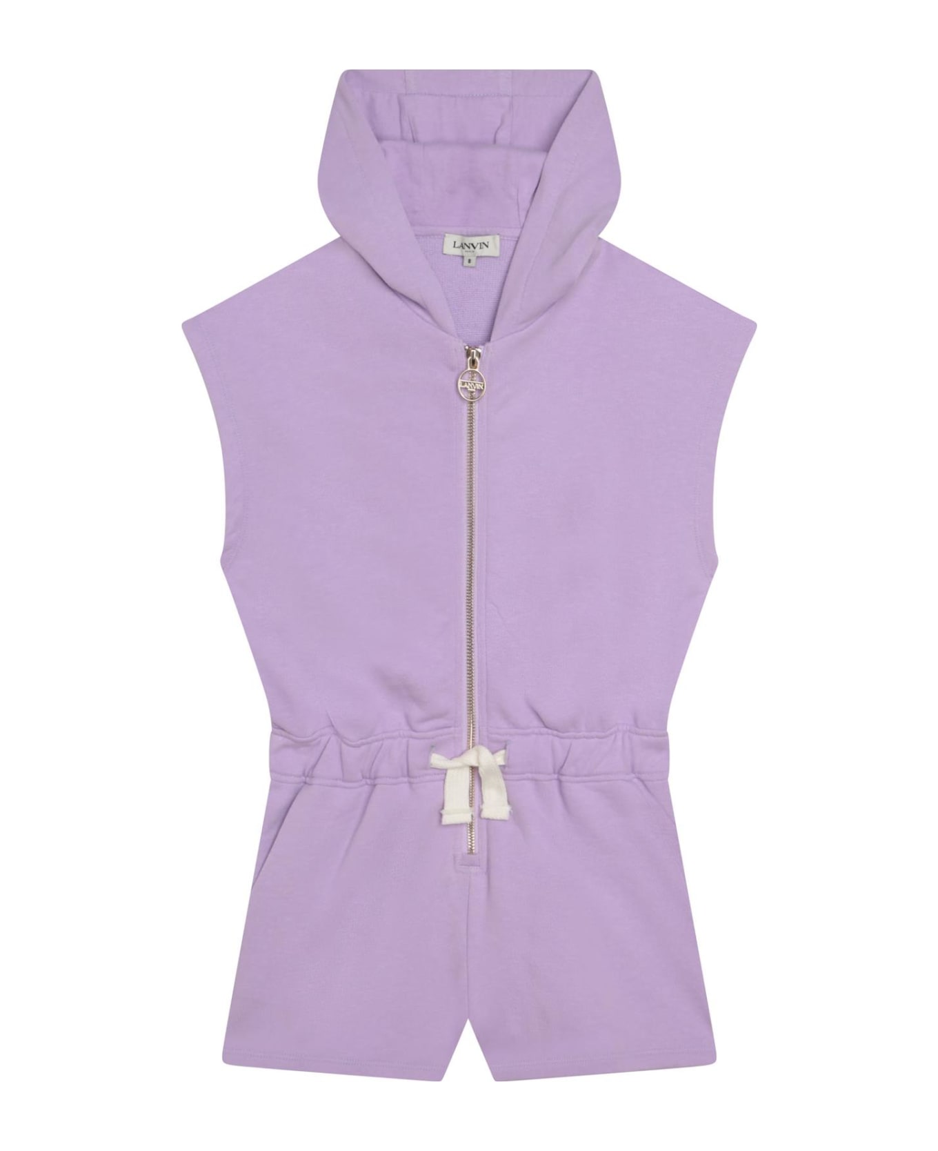 embroidered-logo sleeveless playsuit from Lanvin Enfant featuring lilac purple, cotton, embroidered logo to the rear, sleeveless, classic hood, front zip fastening, drawstring waist and straight hem.