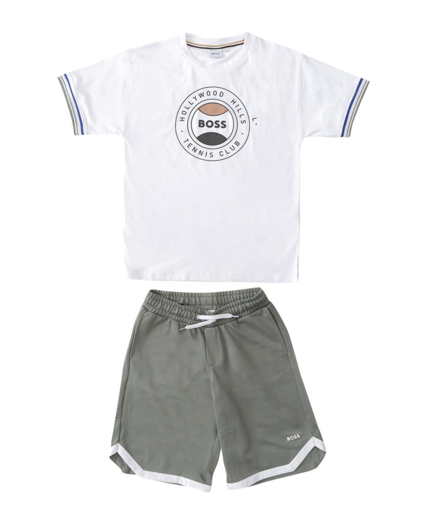Cotton blend T-shirt, tennis front print, shorts with drawstring, logo