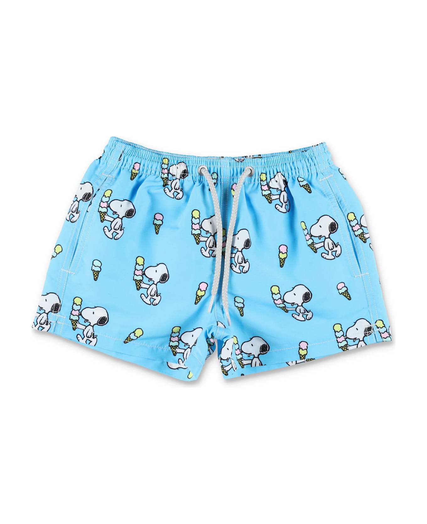 The Mc2 Saint Barth Jean Snoopy Swim Shorts Combine Fun And Comfort For Kids. Made From Lightweight, Quick-dry Fabric, They Feature An All-over Snoopy And Ice Cream Print, Elasticated Waistband With Adjustable Drawstring, And Back Pocket. Ideal For Carefree Beach Or Pool Days. Lightweight, Quick-dry Fabric