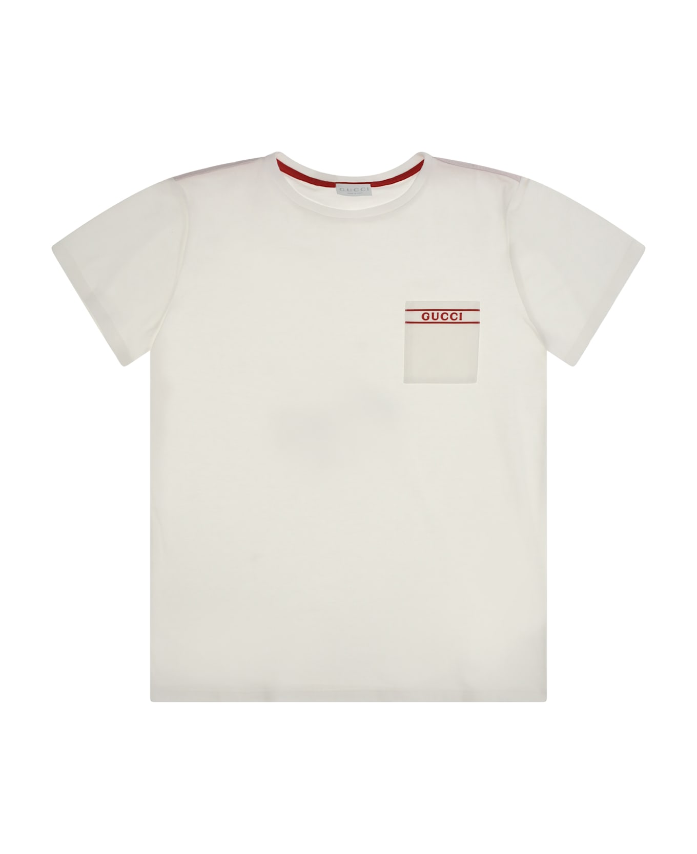 The cotton t-shirt by gucci for boy is a simple yet refined garment, made from soft cotton to ensure all-day comfort. the front pocket with contrasting logo adds a distinctive, luxurious touch, making this t-shirt ideal for little ones who want a casual yet stylish look.