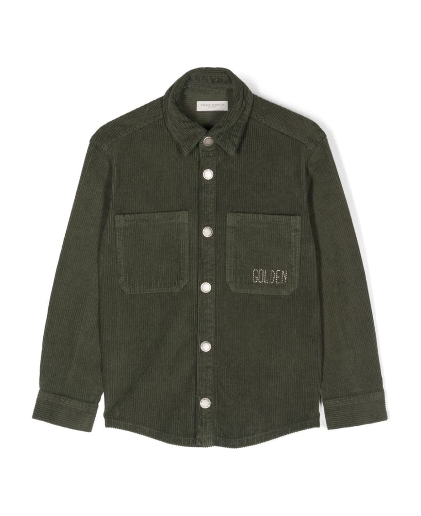 green polyester shirt embroidered logo at the chest classic collar front press-stud fastening two chest patch pockets long sleeves press-stud fastening cuffs curved hem
