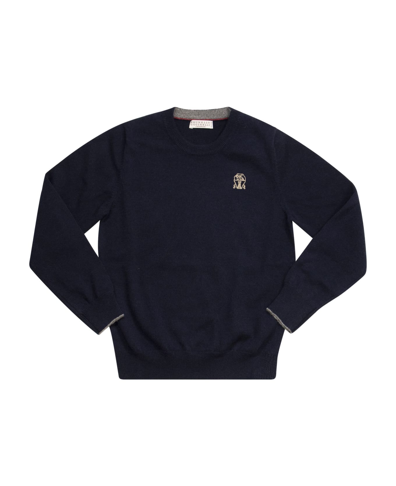 In children's knitwear one recognises the fine materials, attention to detail and tasteful colours, all distinctive features of the Brunello Cucinelli collections. The soft yarn in pure cashmere enriches the essential style of this light and snug knit. - Crew neck - Ribbed bottom hem, collar and cuffs - Stitched logo on chest DESIGNER ID: B22M10010B CTH29