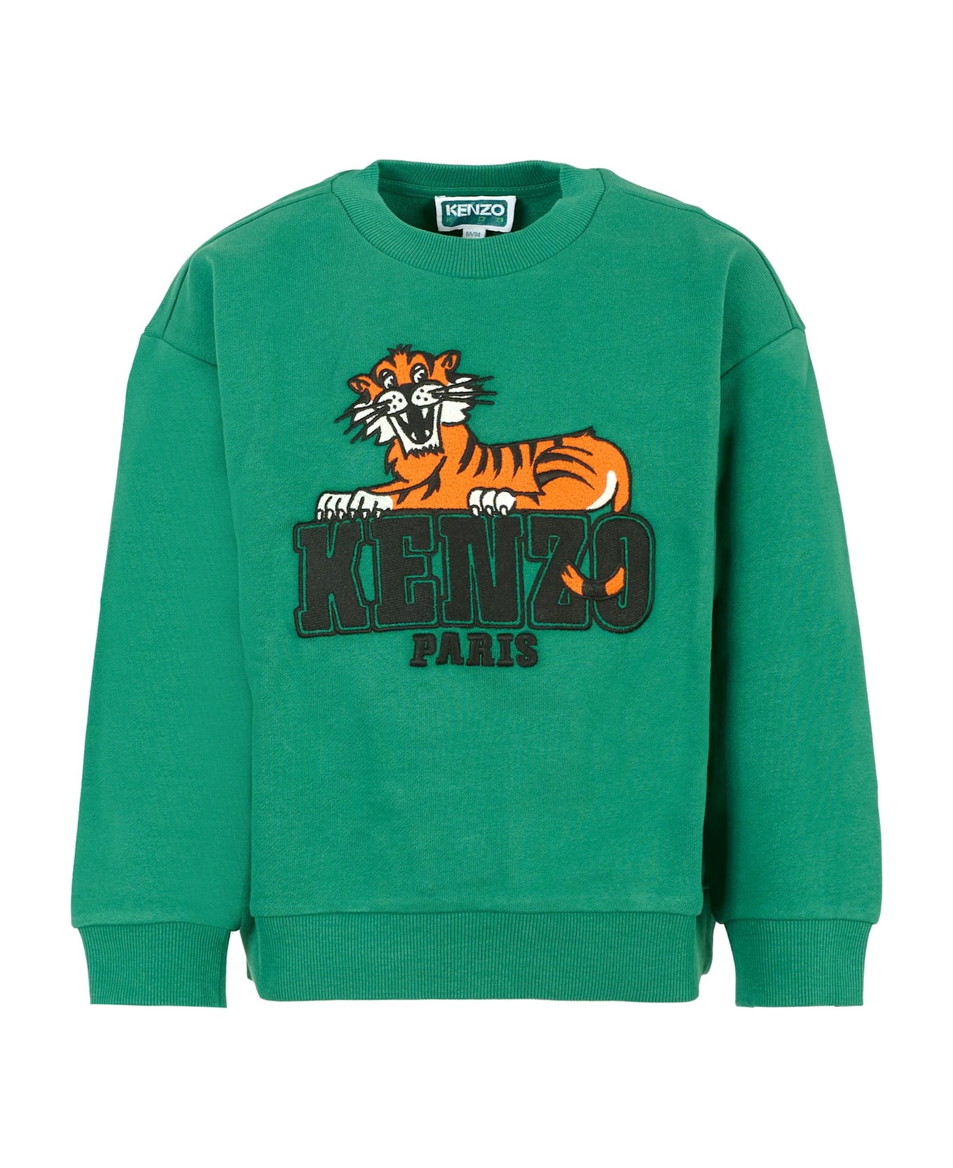 Green sweatshirt in gauzed cotton, long sleeves, with ribbed crew neck, cuffs and hem. It is embellished with logo and the iconic tiger, embroidered on the front.