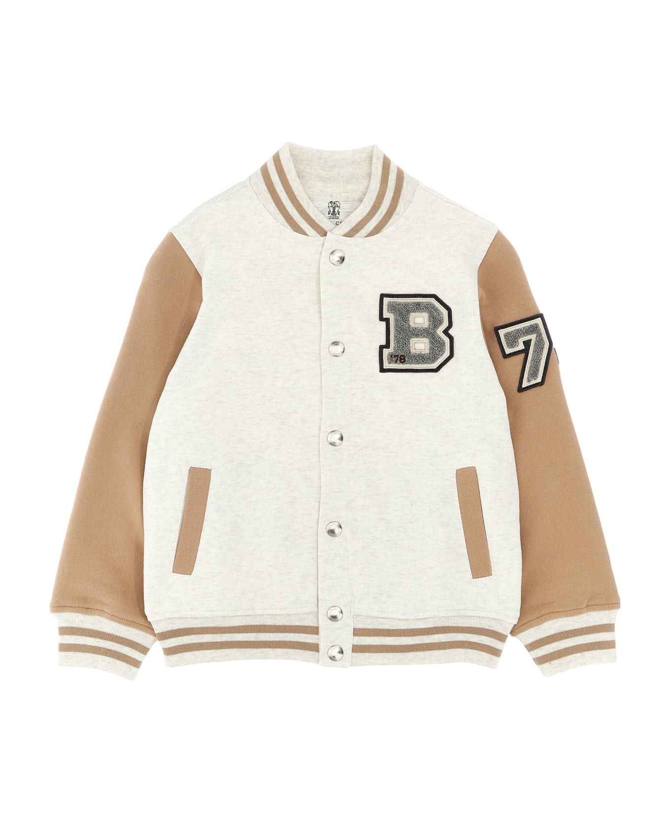 Cotton cardigan with logo patch, button closure, pockets, long cuffed sleeves.