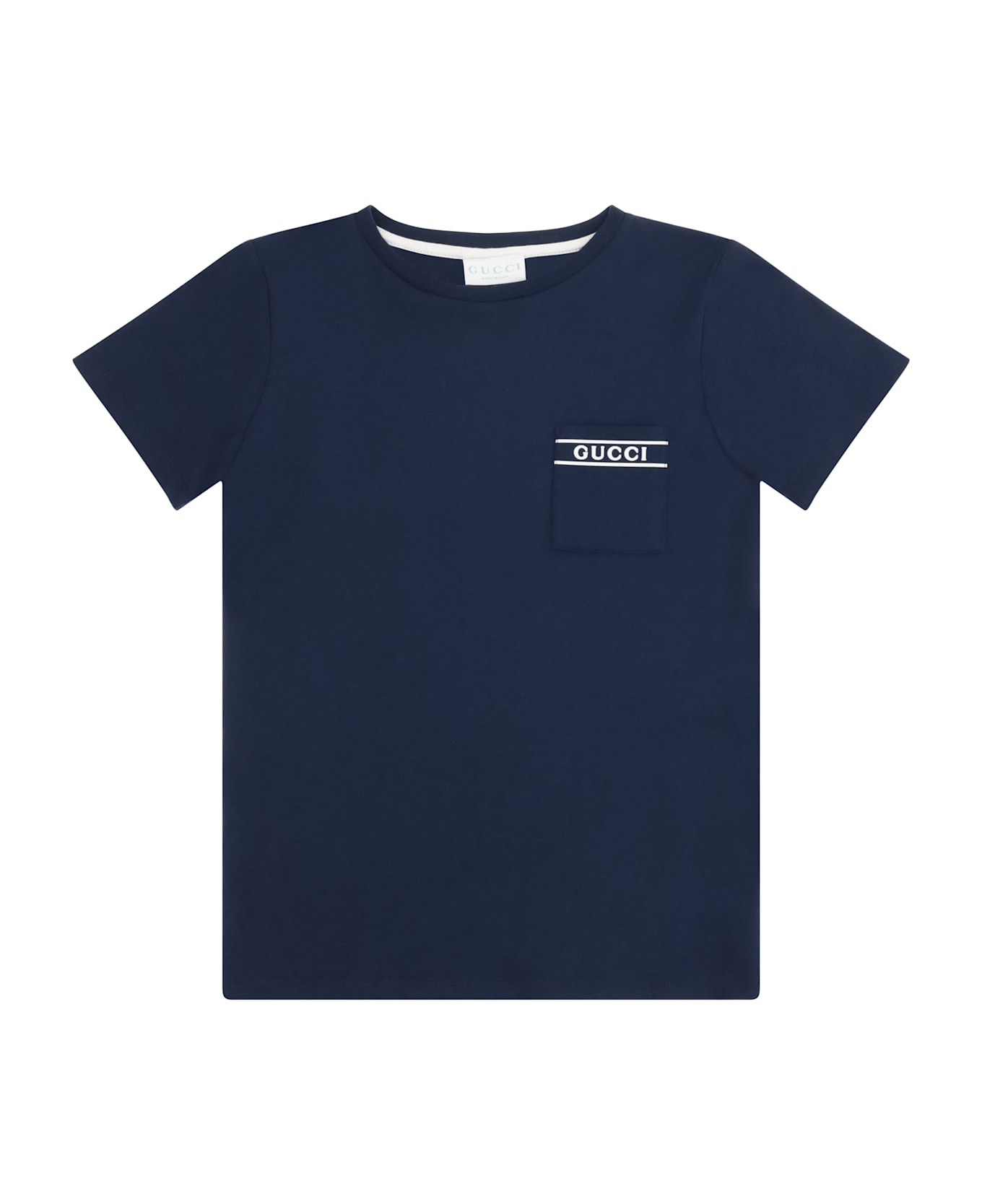 The t-shirt for boy by gucci combines simplicity and iconic style in a minimalist yet recognizable design. crafted from soft cotton, it stands out for its contrasting logo print on the chest pocket. comfortable and versatile, it is an everyday garment that reflects the playful spirit and timeless elegance of the house of gucci, perfect for easily pairing with different looks.