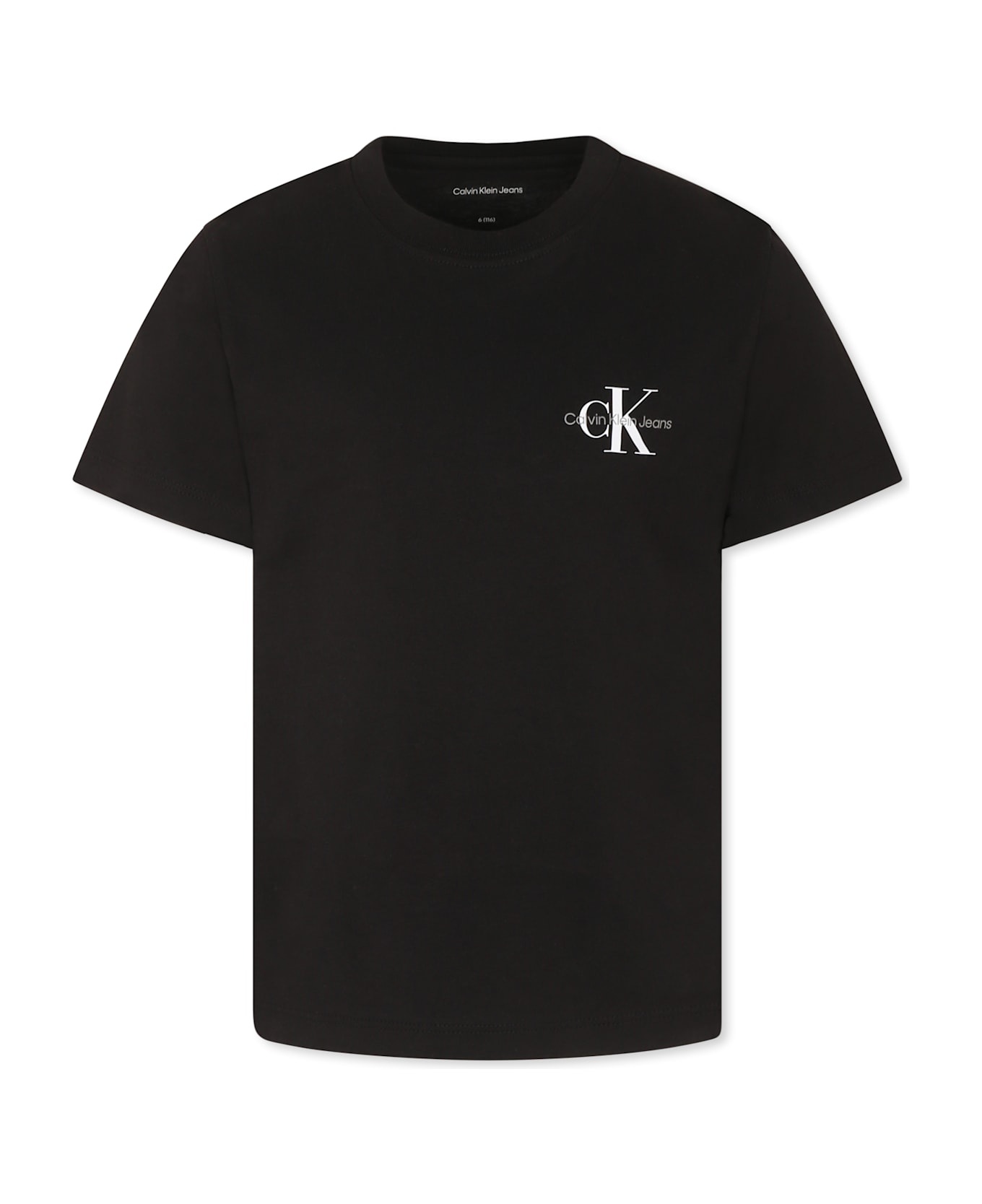 Black cotton t-shirt, with short sleeves and ribbed crew neck. It is embellished with logo and monogram on the chest.