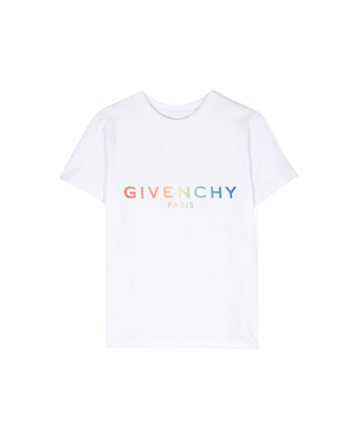 White Crewneck T-shirt With Multicolored Logo Print In Cotton Boy