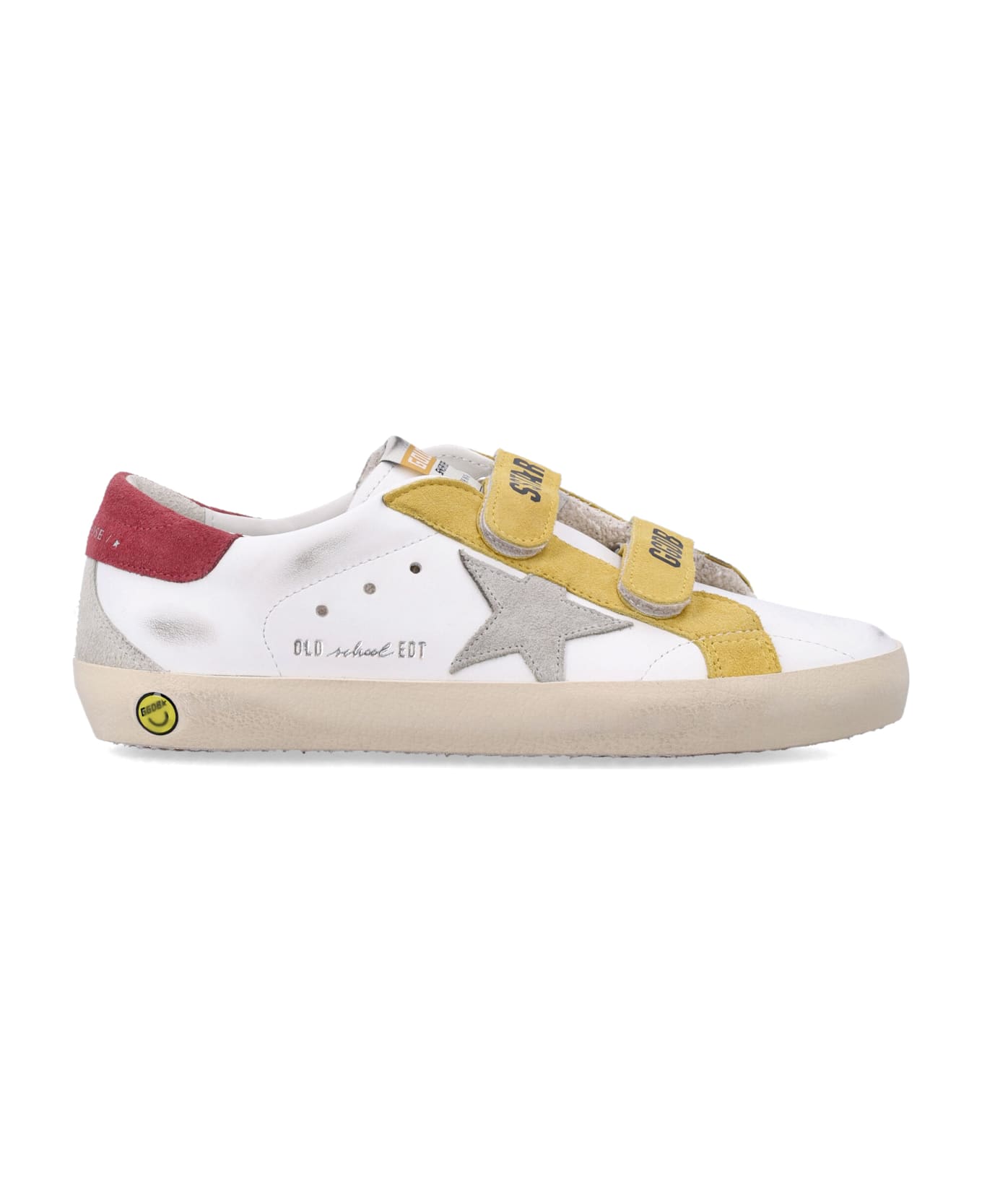 Golden Goose Kids Old-school Leather Sneakers Combine Playful Color Accents With Iconic Design Details. Crafted From Smooth Leather With Suede Overlays, These Sneakers Feature A Contrasting Star Logo And Double Yellow Straps For Easy Wear. The Red Heel Tab And Subtle Distressed Effect Add A Fun, Vintage-inspired Touch. Leather With Suede Overlays Upper