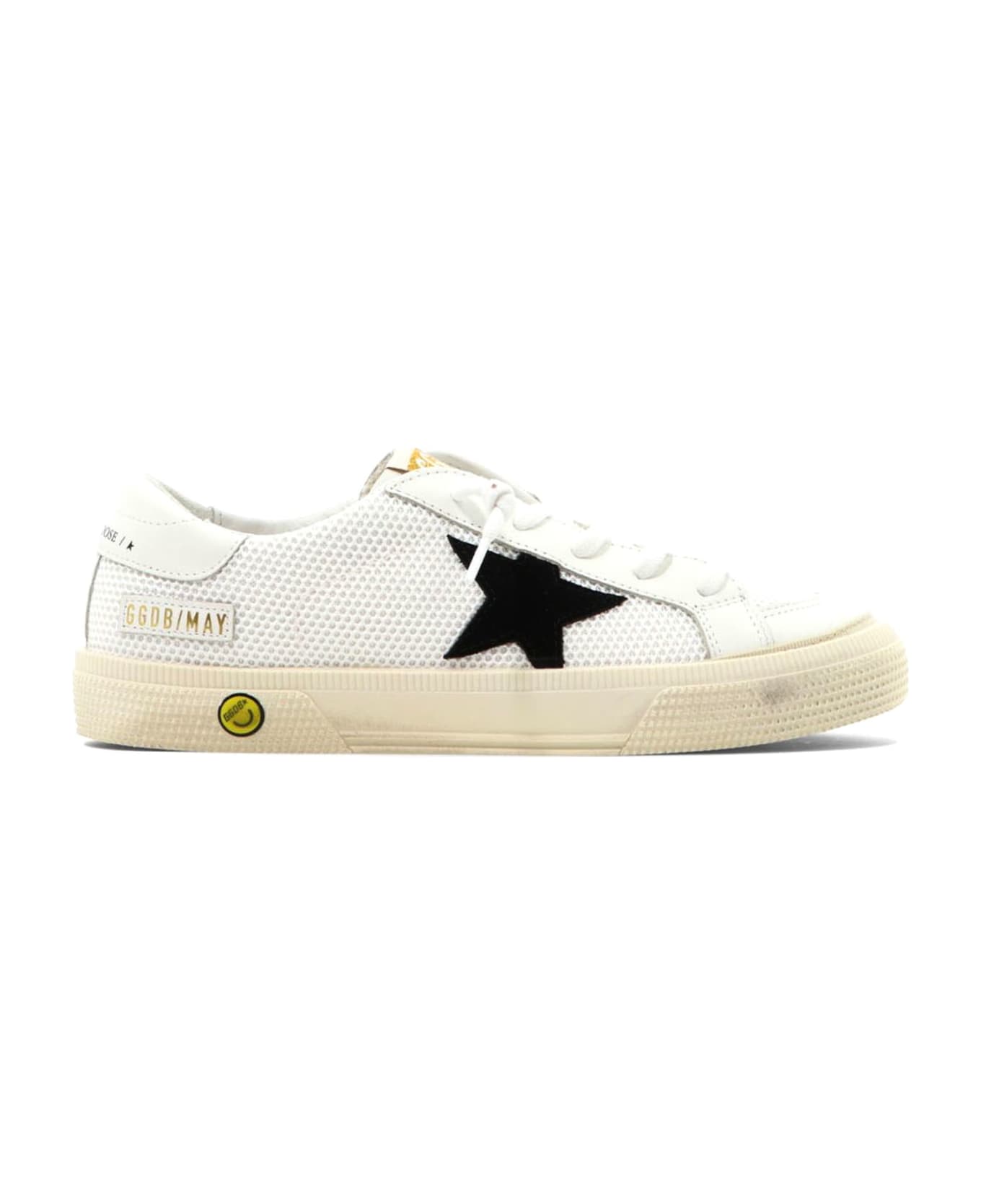 White calf leather sneakers, panelled design, signature star patch to the sides, logo patch at the tongue, branded heel counter, front lace-up fastening, branded footbed, round toe, flat rubber sole