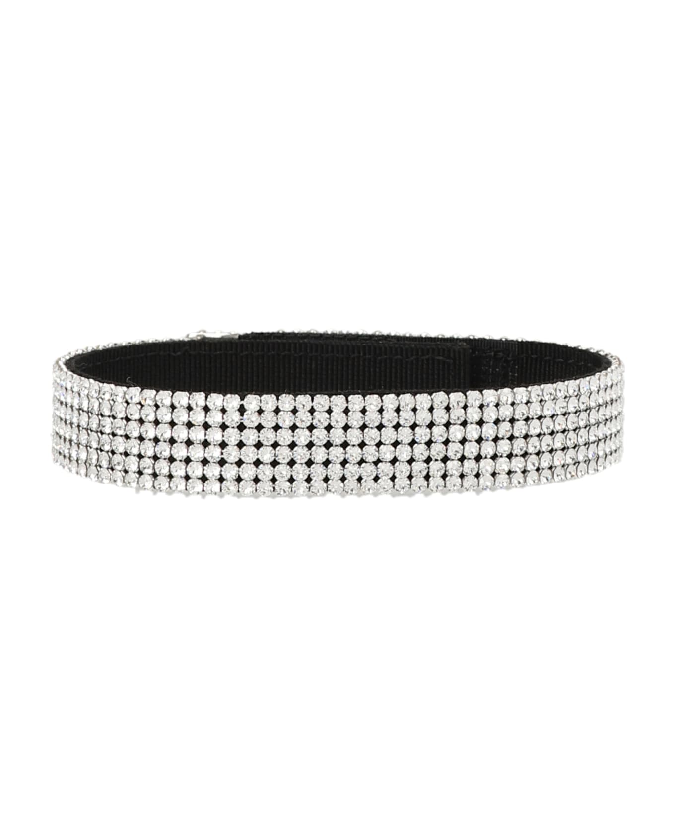 Choker with crystals and velcro closure. Composition: