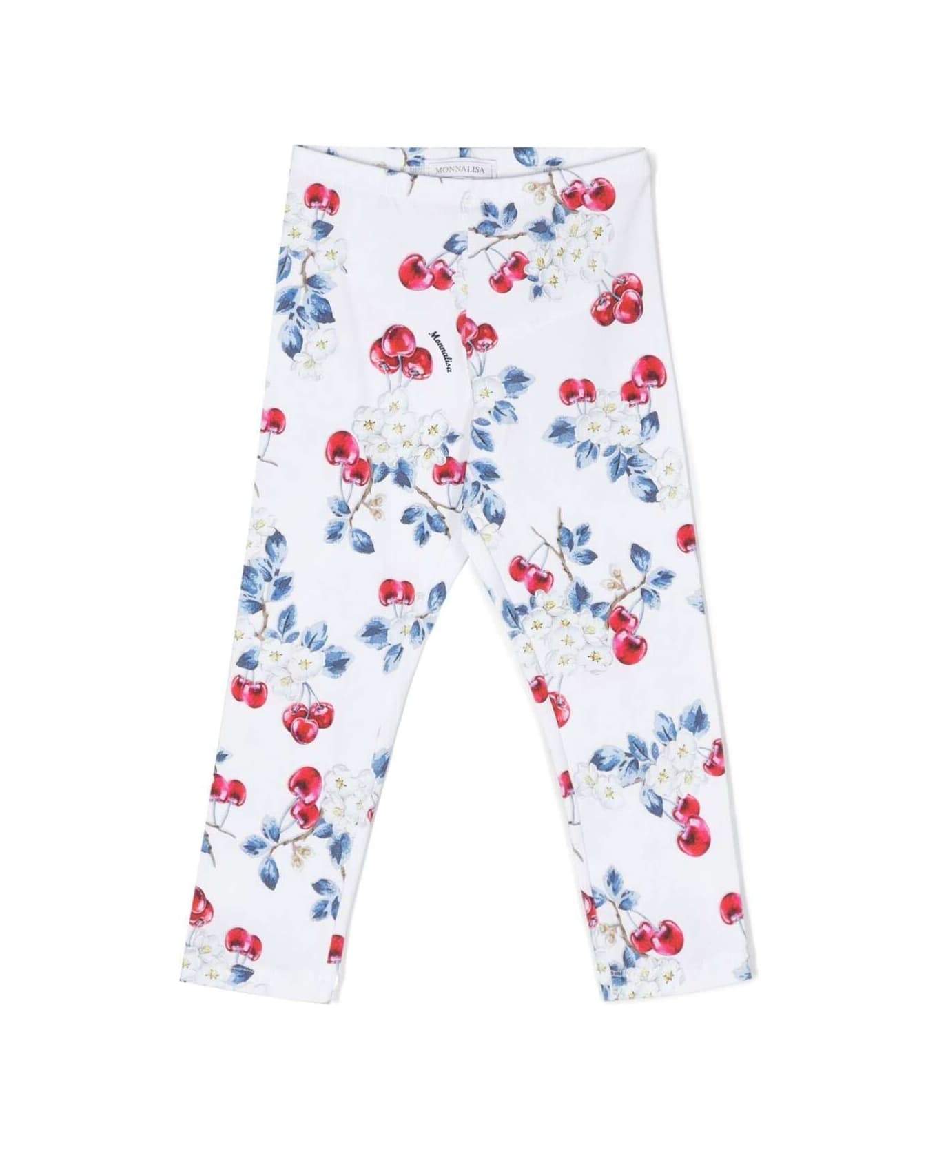 White Leggings With Cherry And Logo Print In Stretch Cotton Girl