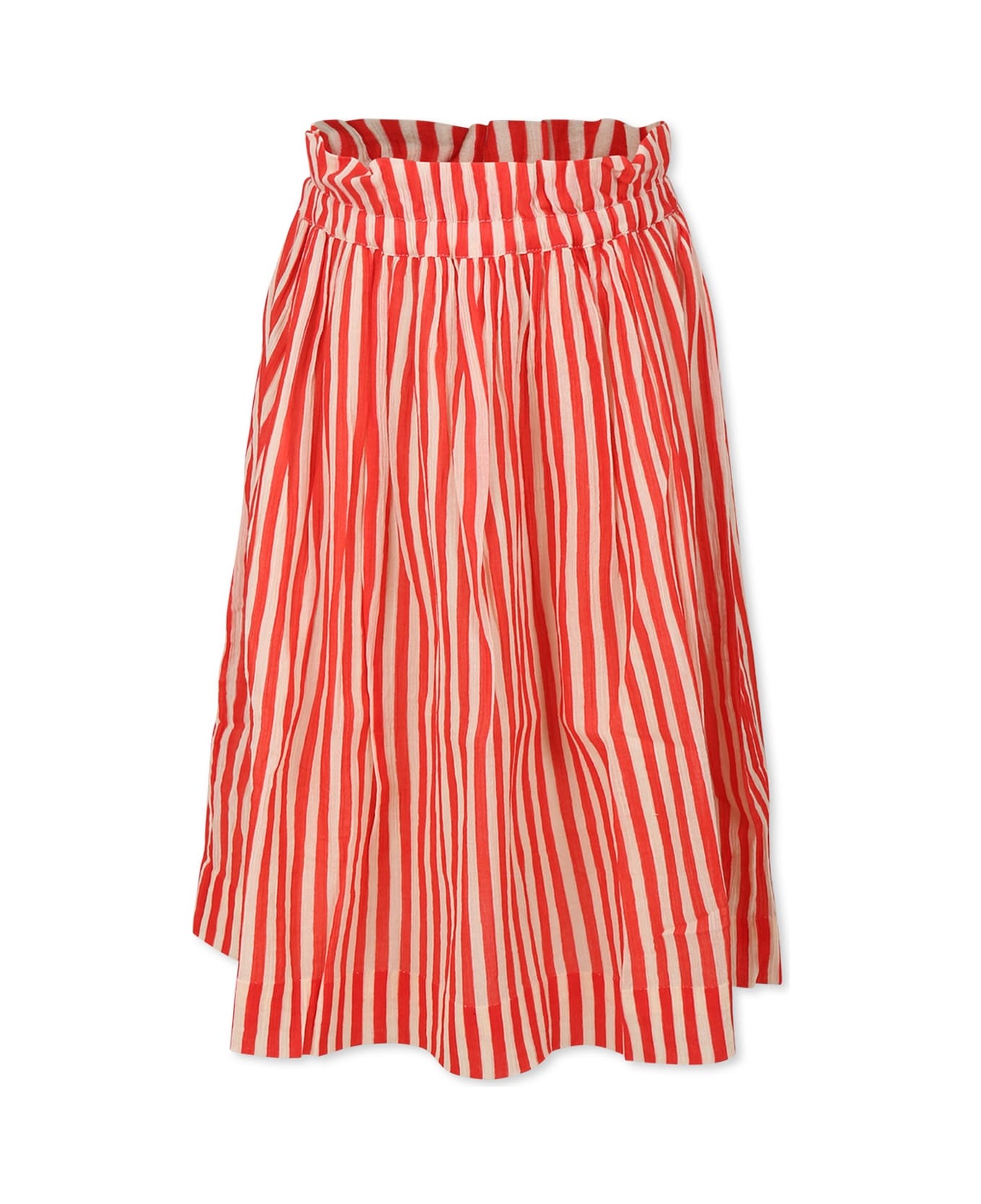 Red striped skirt, in cotton, with elasticated waist and cotton muslin.