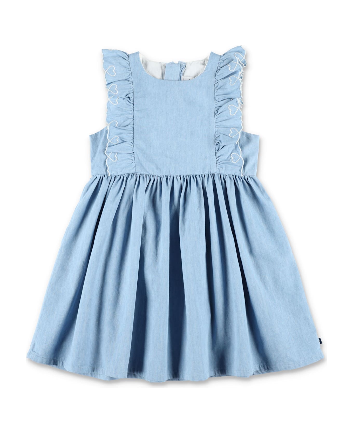 The Petit Bateau Dress For Girls Is Crafted From Lightweight Chambray, A Soft And Breathable Denim-style Fabric Perfect For Warmer Days. Designed With A Flared Silhouette, It Features Delicate Ruffles At The Front And Back That Add A Romantic, Refined Touch. The Gently Gathered Waist Insert Enhances The Shape While Maintaining Comfort, And The Round Neckline Keeps The Design Clean And Timeless. A Concealed Zip Closure At The Back Ensures Ease Of Wear. Lightweight Chambray Fabric Flared Silhouette Round Neckline Decorative Ruffles At Front And Back Gently Gathered Waist Insert Concealed Back Zip Closure Knee-length Comfortable Fit
