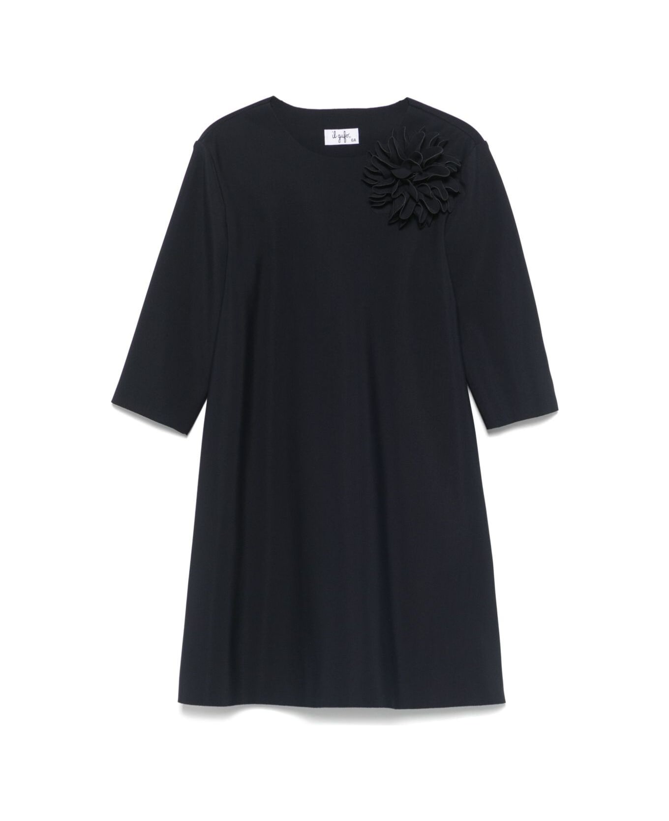 Dress Blue Round neckline Short sleeves Flower applique on the front Straight hem Tech fabric stretch Regular fit