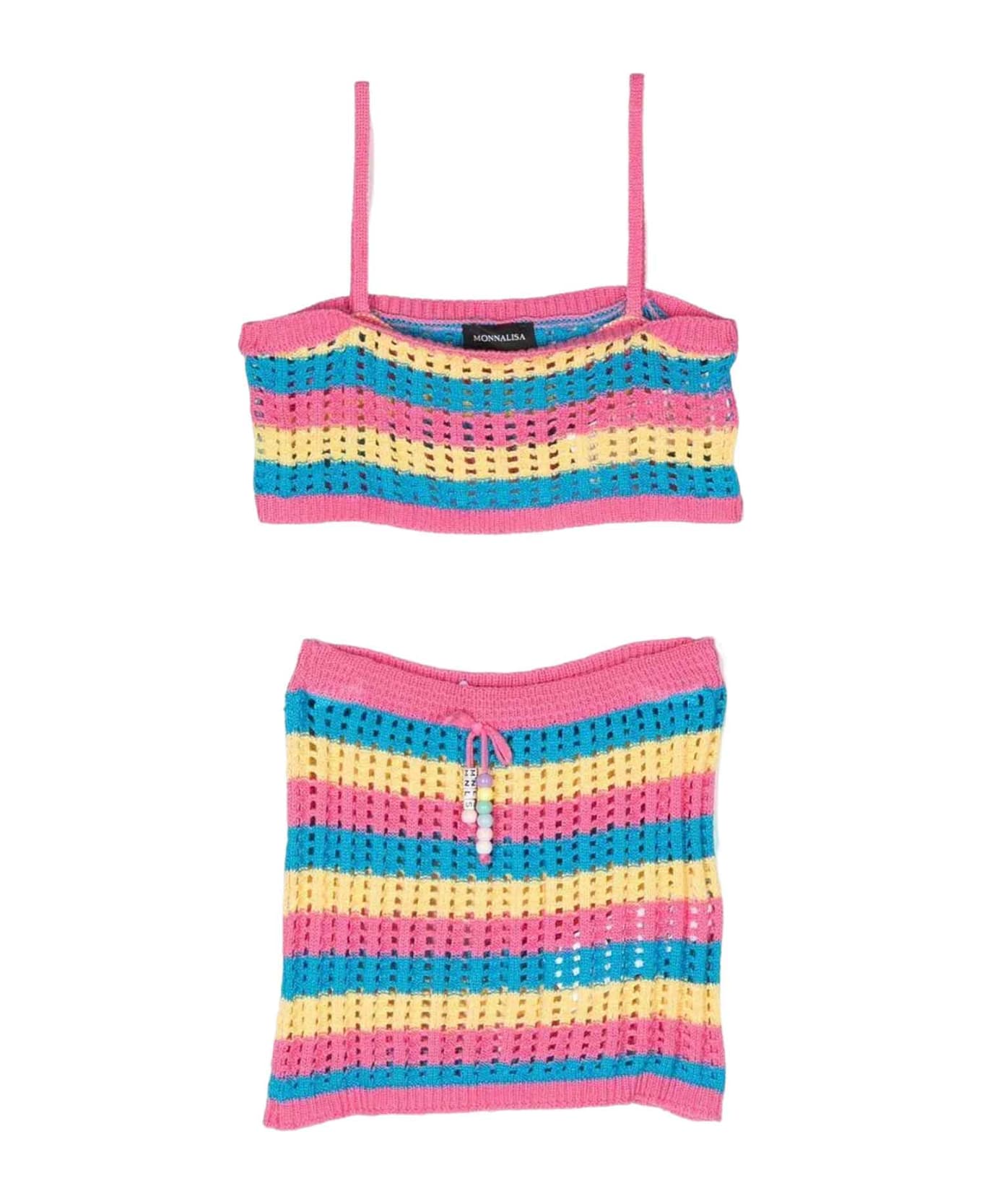 Multicolor outfit girl. Horizontal striped design, beaded logo detail, spaghetti straps and ribbed hem. Viscose 60%, Cotton 40%