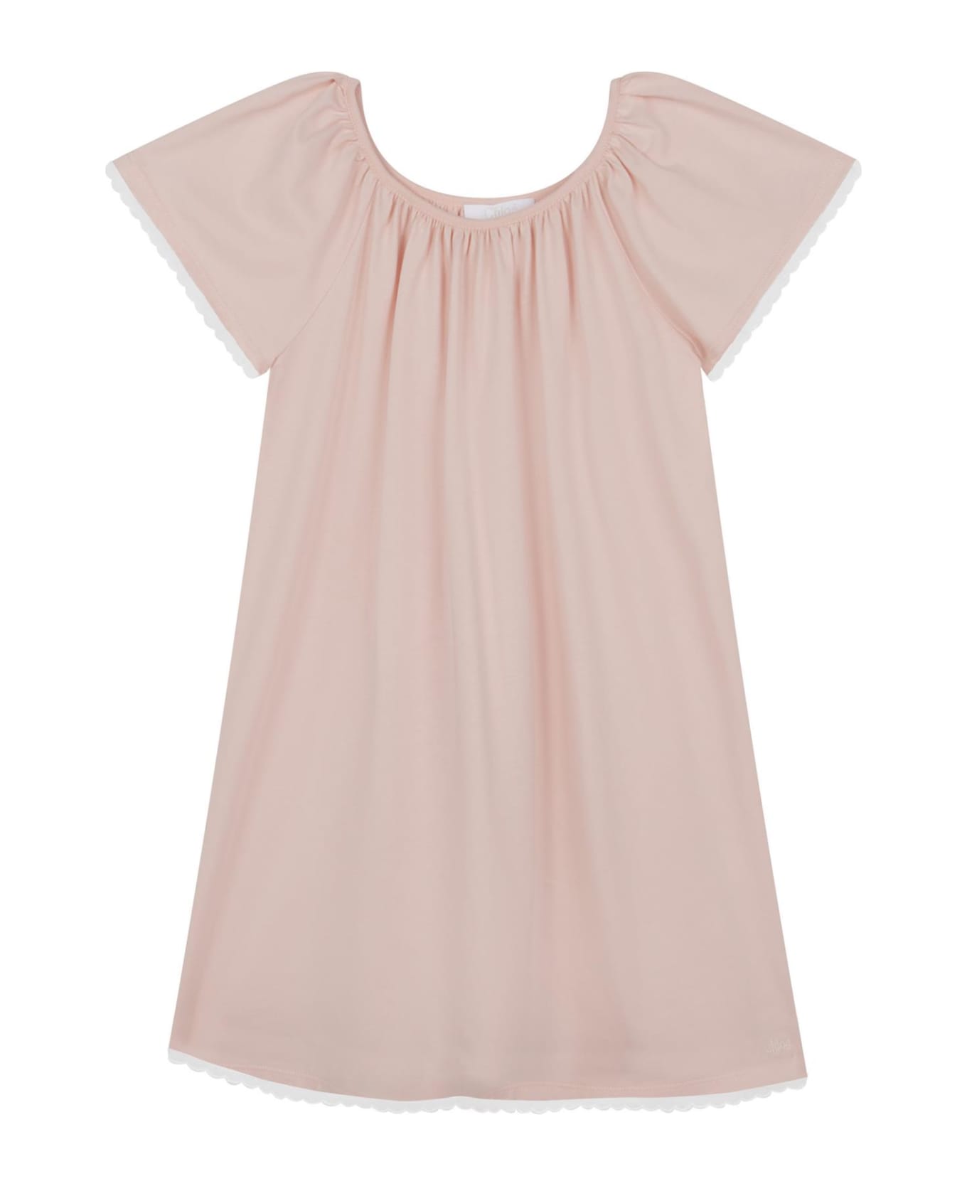 gathered short-sleeve nightdress from CHLOÉ KIDS featuring light pink, cotton, gathered neckline, A-line, round neck, short sleeves and curved hem. Composition: Cotone, 100%