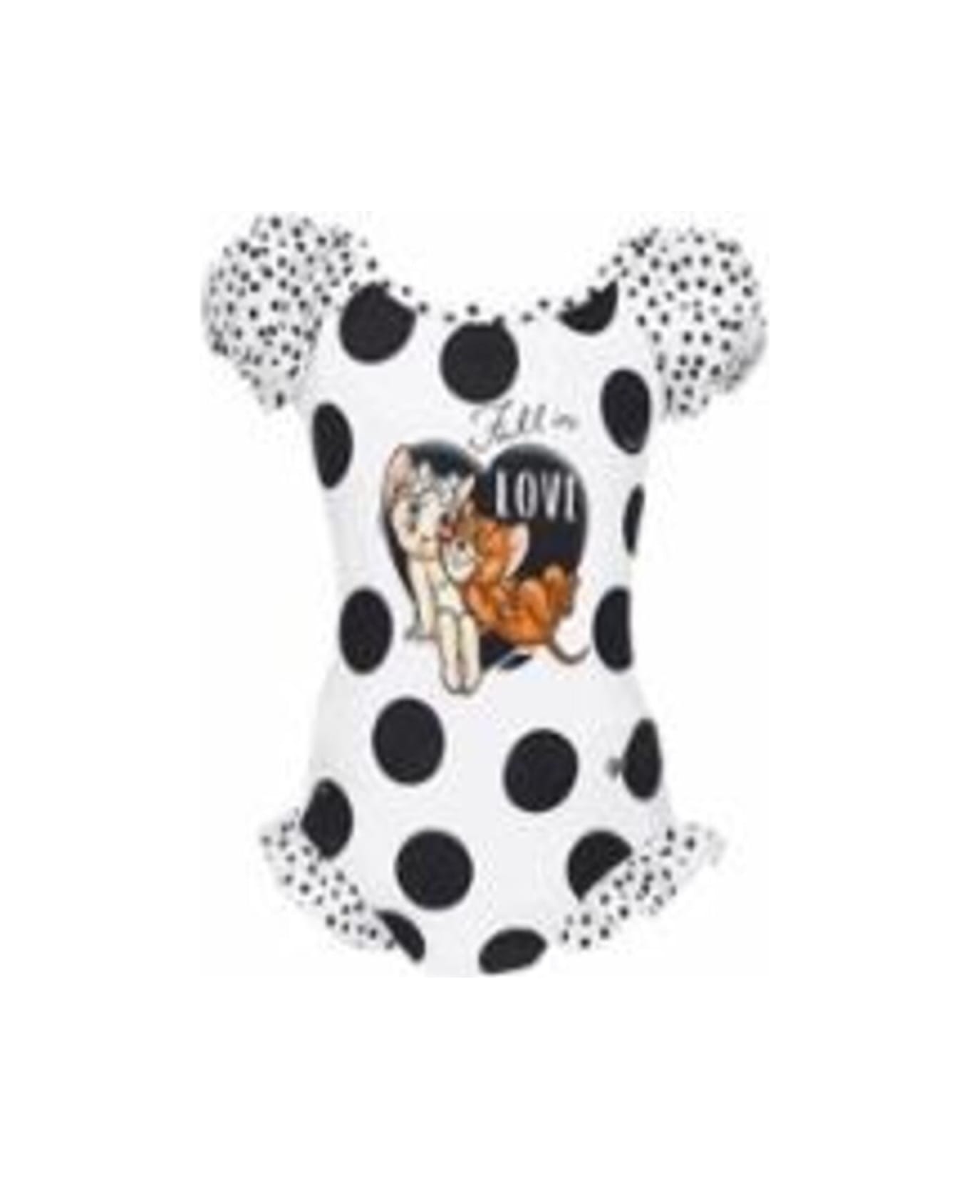 'faill In Love' White And Black Polka-dots One-piece Swimsuit With Mice Print In Stretch Fabric Girl