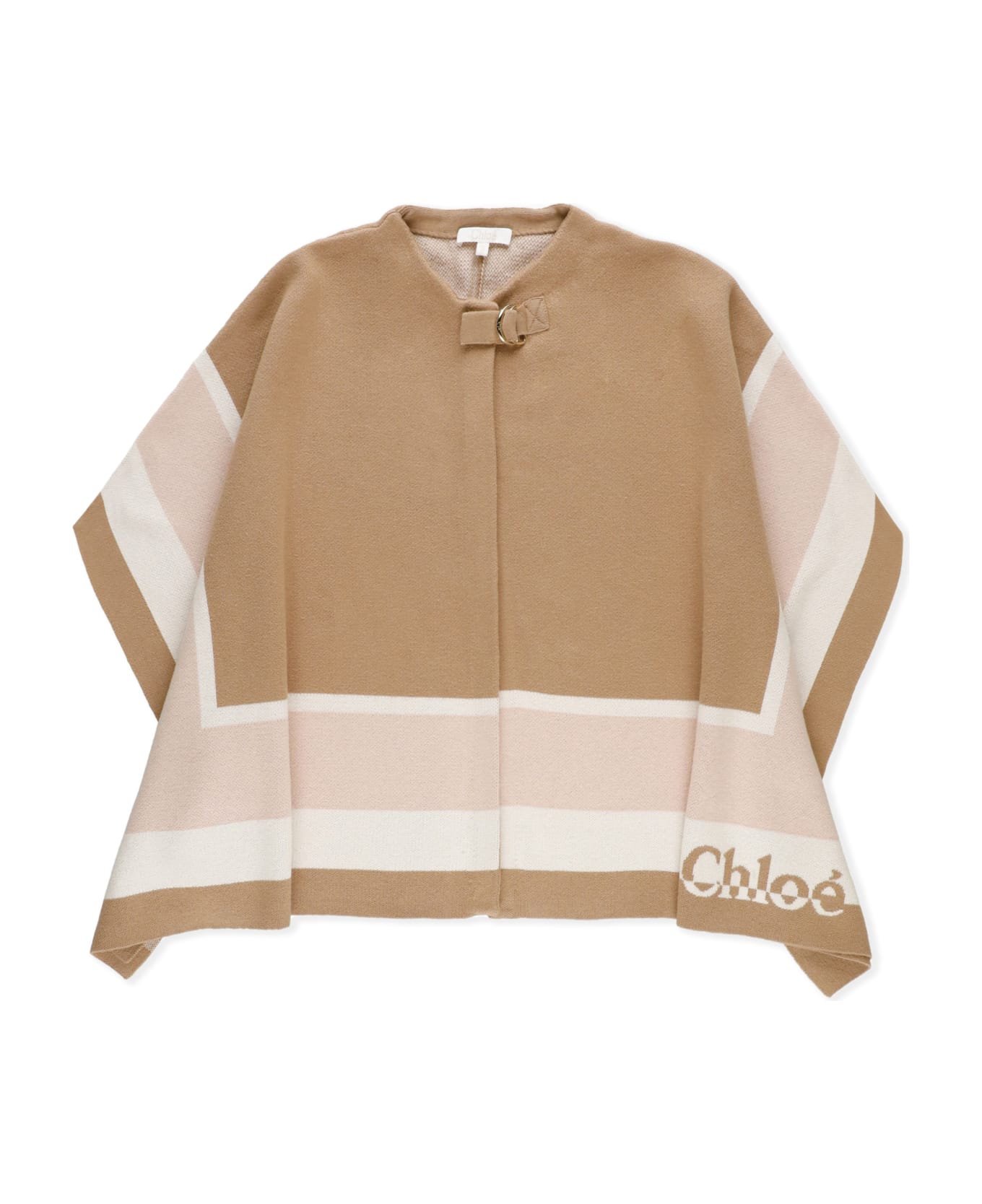 - Beige Chloe Junior cotton and lana blended poncho for girl - Crew neck - Dropped shoulders - Front metalic detail - Front snap buttons fastening Composition: 90% Cotton, 10% Wool